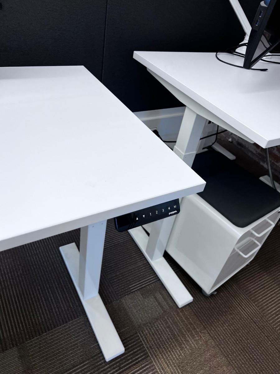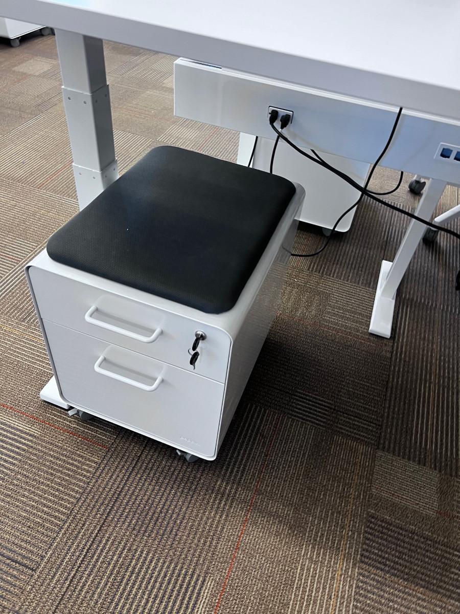 Good Working Condition. Measure 57" X 27" Meant to be standing desks. Lot Includes Mini Stowe Cabinet (2 Drawer) with Magnetic Pad called the Mini Stowe Seat Pad that is usable for a seat. Or Removable Bring Help to move down the Stair from the Second floor. There is no Elevator in this historical building.