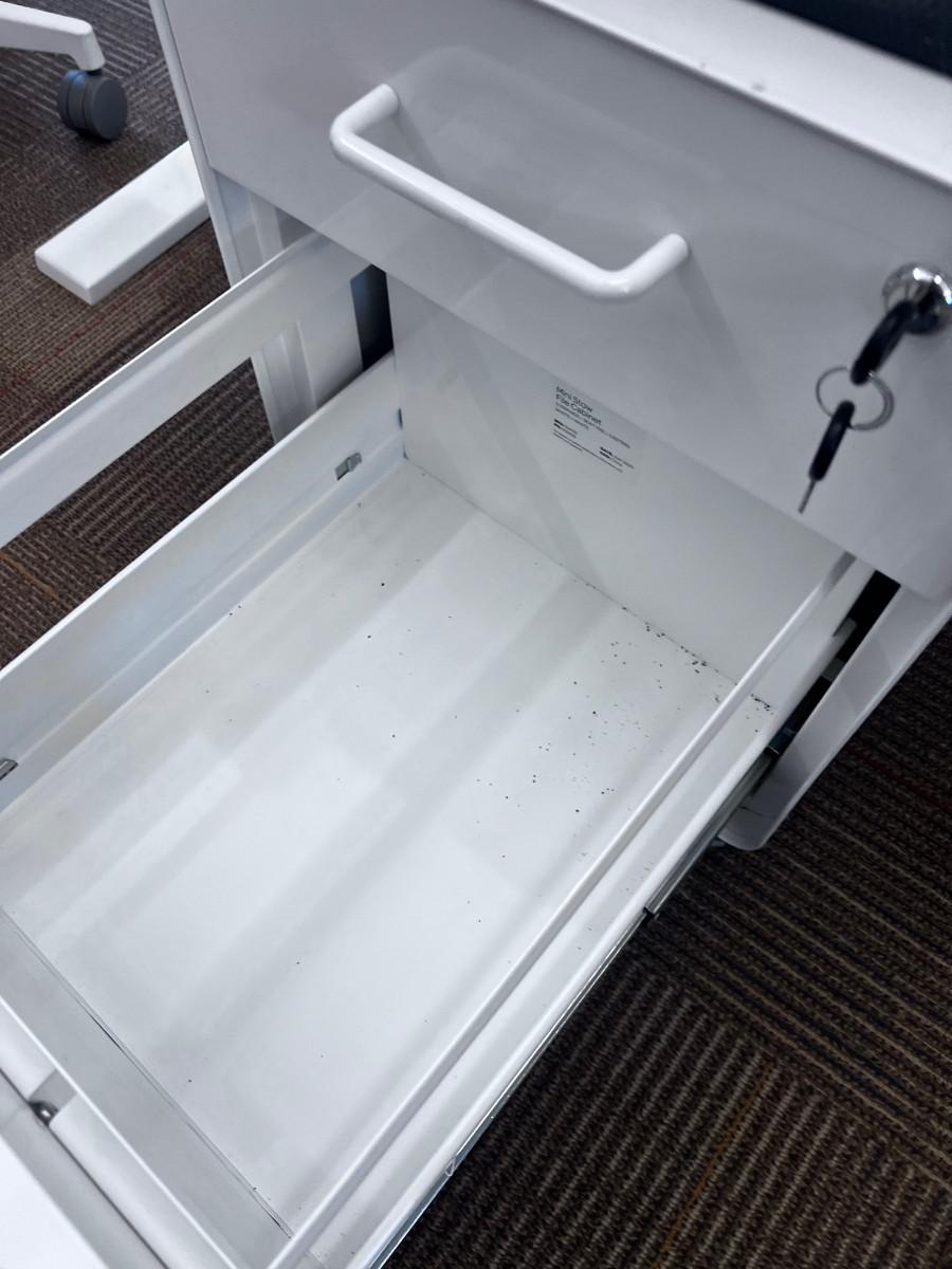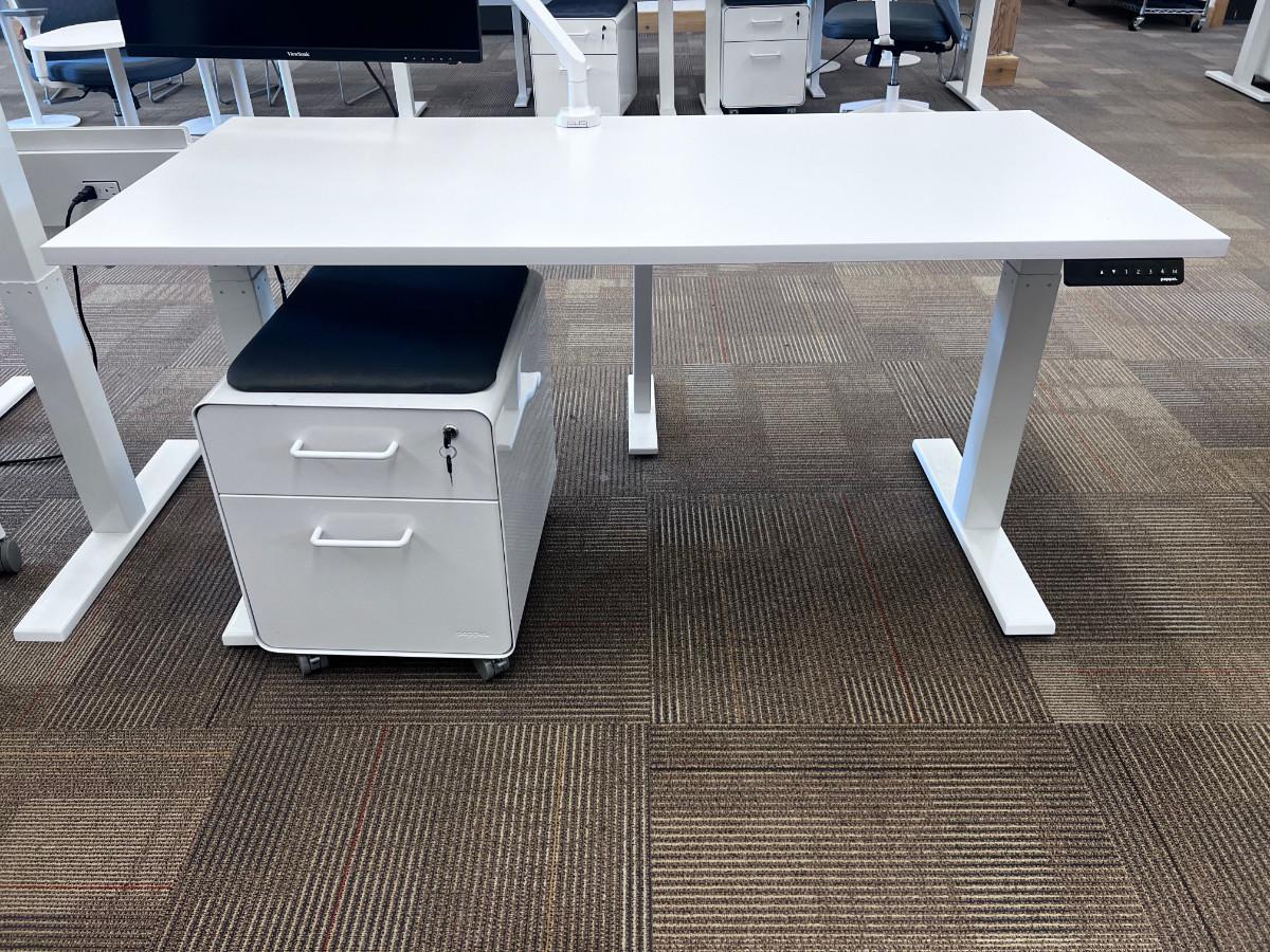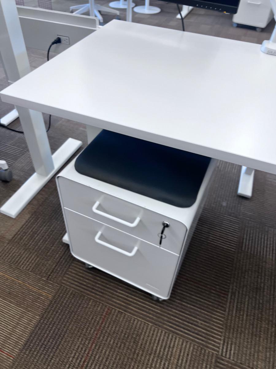 Good Working Condition. Measure 57" X 27" Meant to be standing desks. Lot Includes Mini Stowe Cabinet (2 Drawer) with Magnetic Pad called the Mini Stowe Seat Pad that is usable for a seat. Or Removable Bring Help to move down the Stair from the Second floor. There is no Elevator in this historical building.