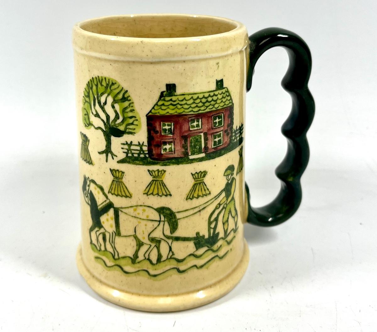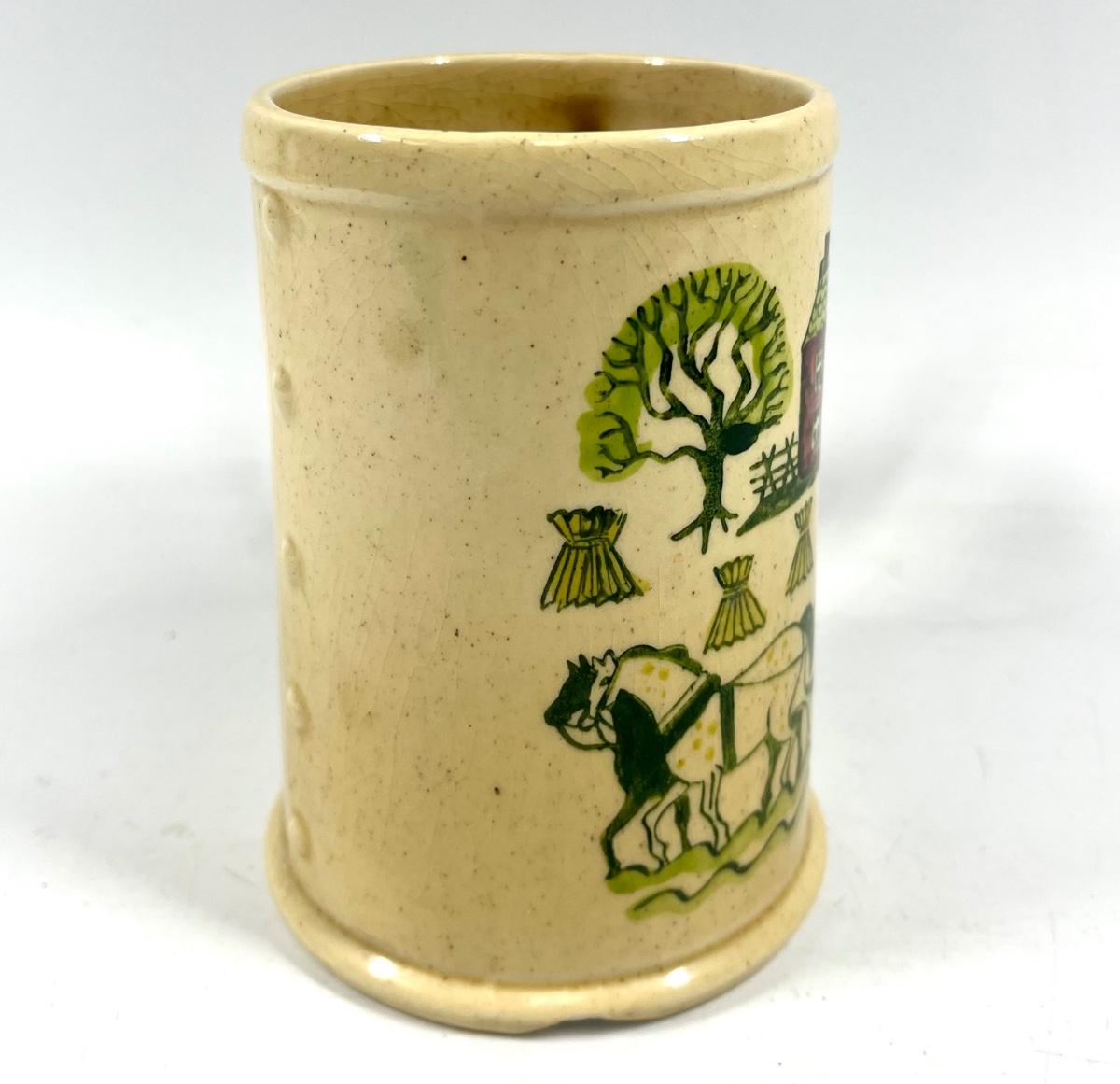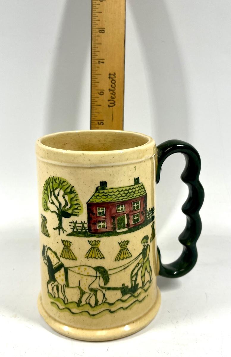 Poppytrail by Metlox Pottery Painted Farm Scene Stein, two chips one on rim and one on base