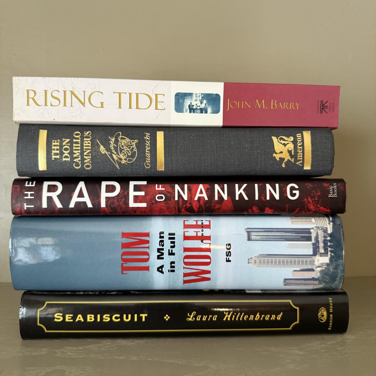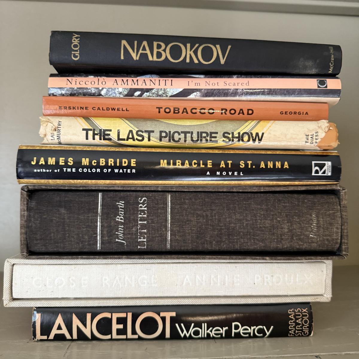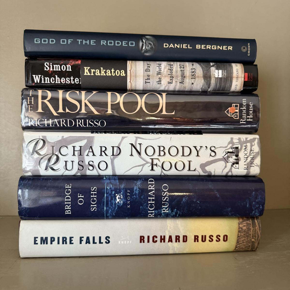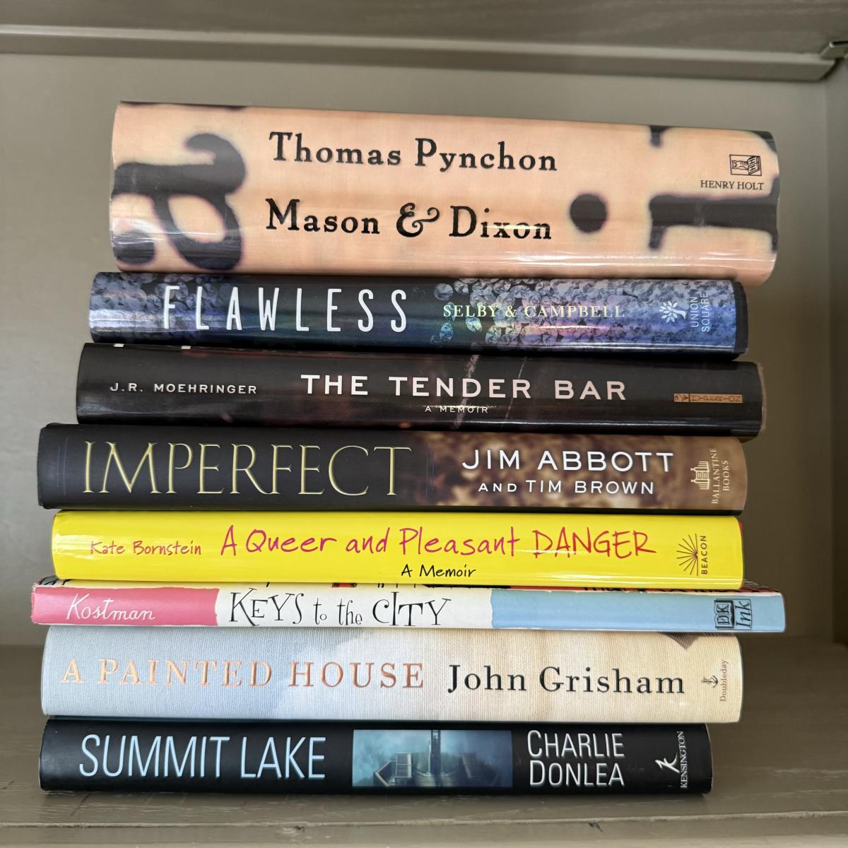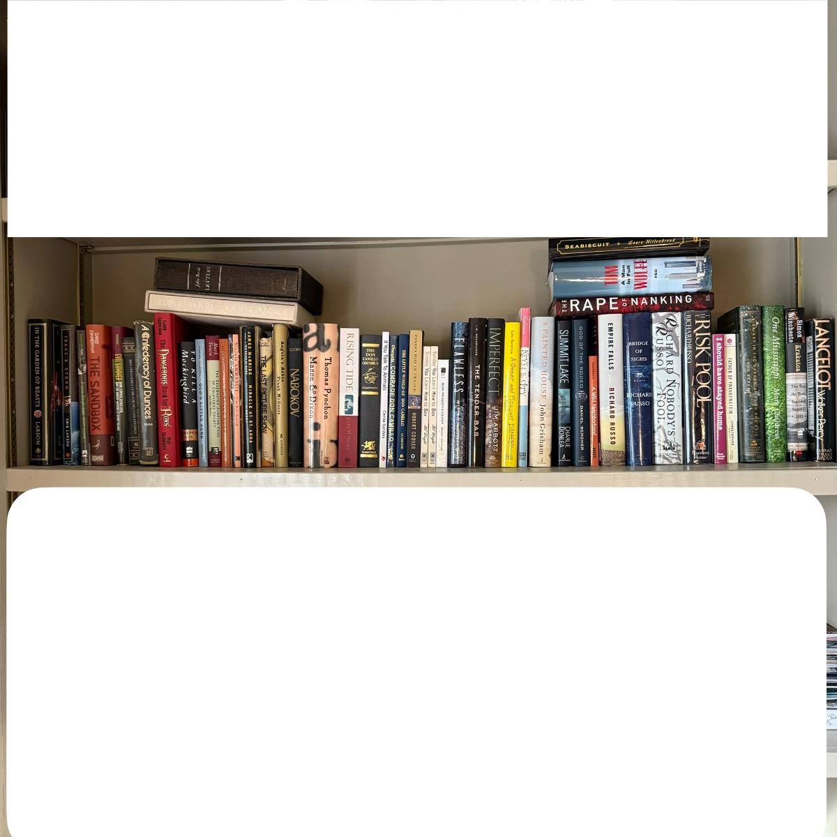A large collection of popular novels. Authors ranging from Tom Wolf and Walker Percy to Richard Russo, John Grisham and David Zimmerman.
