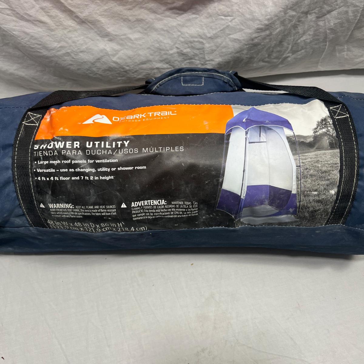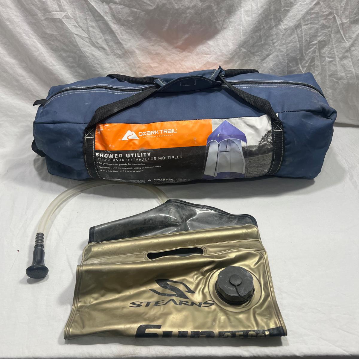 Pop-up Shower tent with Shower Bag included . Tent is by ozark Trail