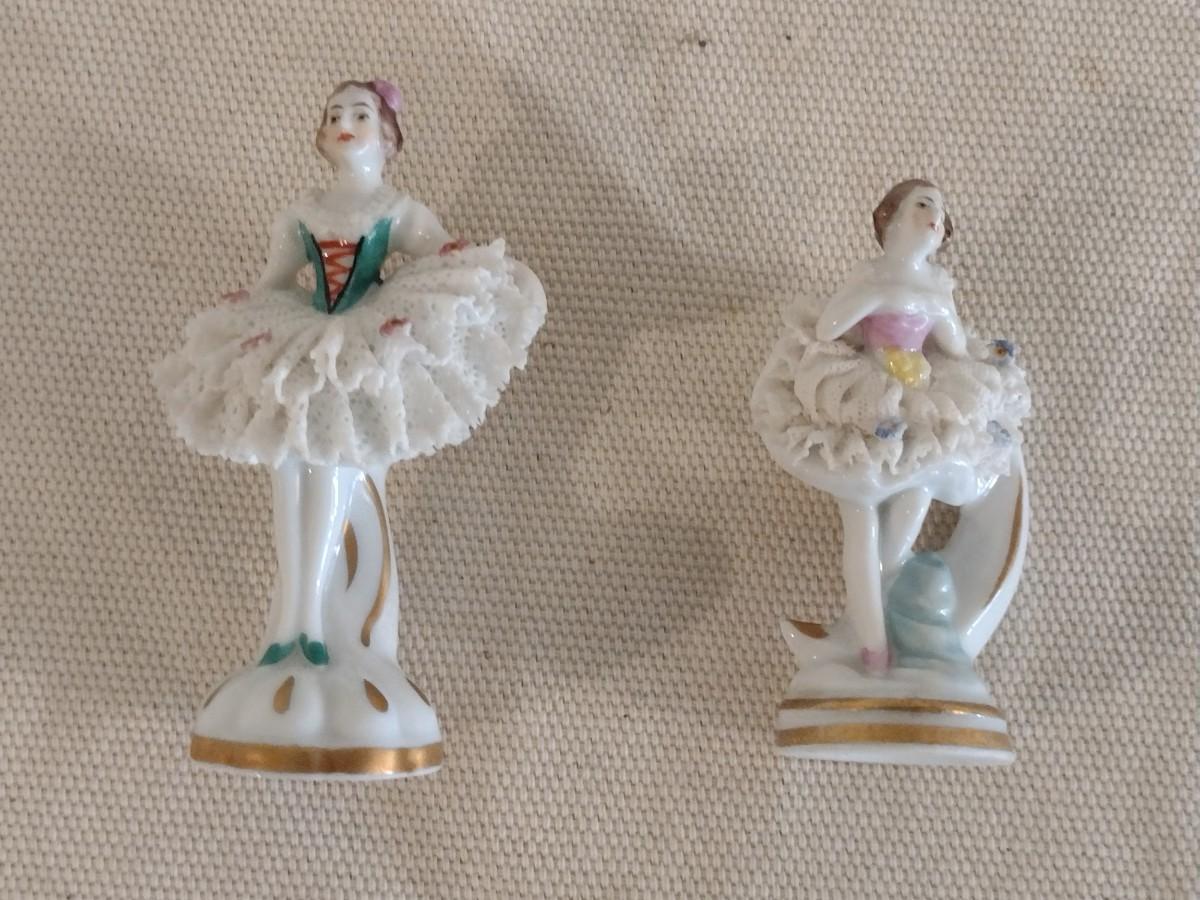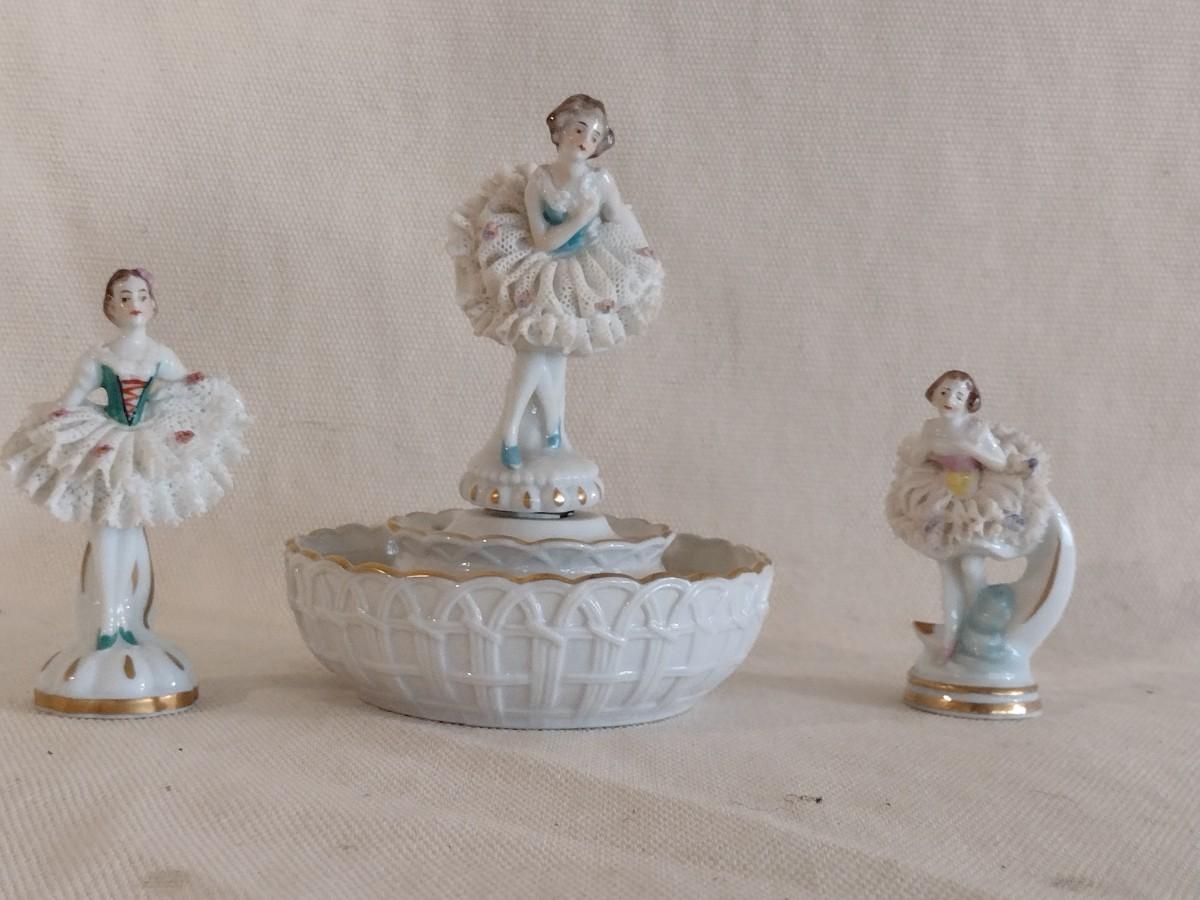 Set of Three Antique Porcelain Lace Ballerinas