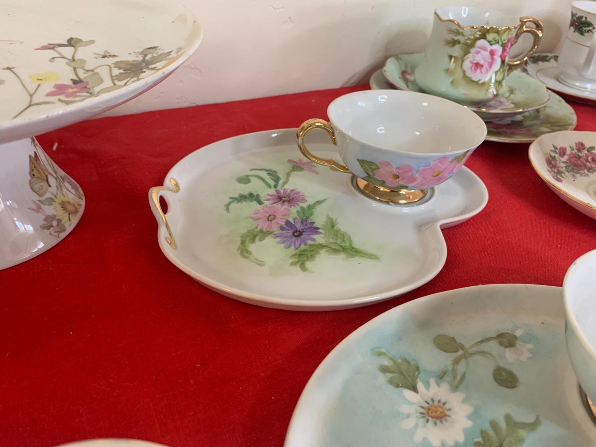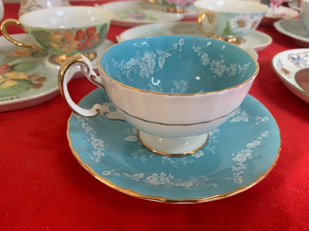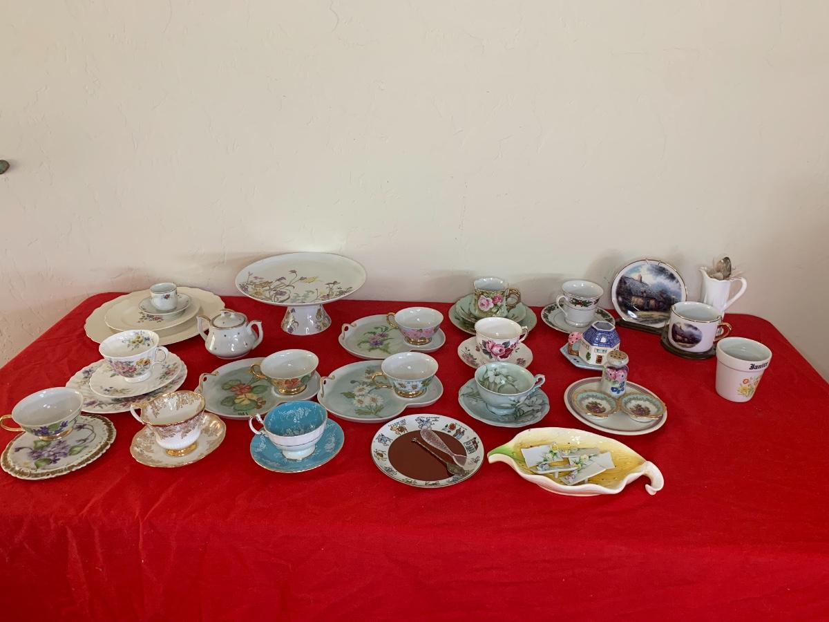Beautiful china, tea cups, saucers, and snack plates. Brand names like Aynsley, Royal Albert, Bavaria, Queen Anne, Royal Doulton, Limoges, and more!