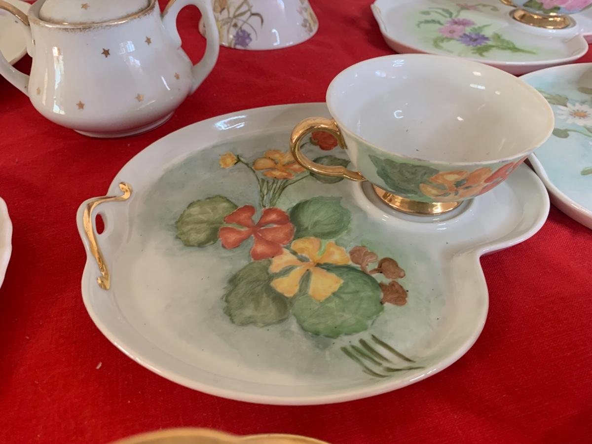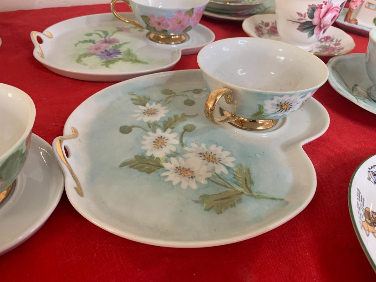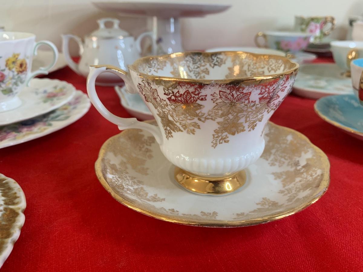 Beautiful china, tea cups, saucers, and snack plates. Brand names like Aynsley, Royal Albert, Bavaria, Queen Anne, Royal Doulton, Limoges, and more!