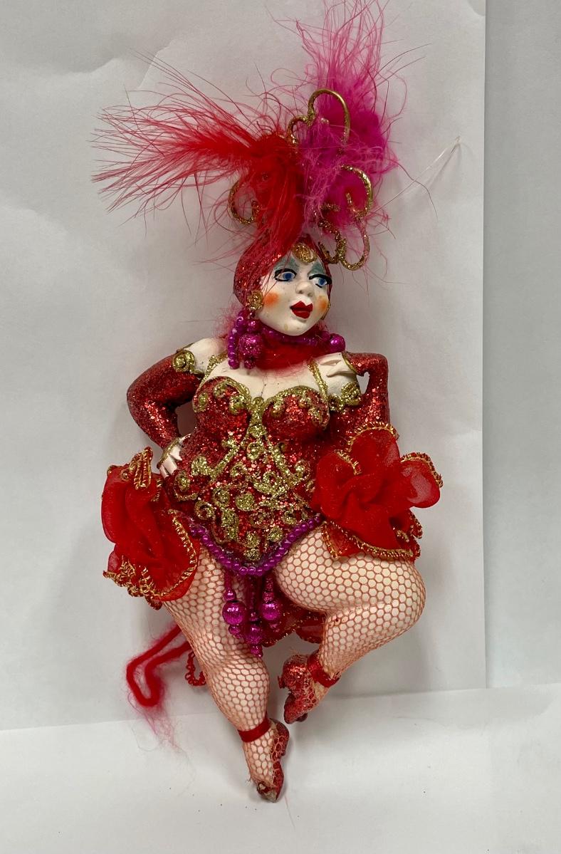 Artist Signed Chubby Chunky Cabaret Burlesque Dancer Doll in Red