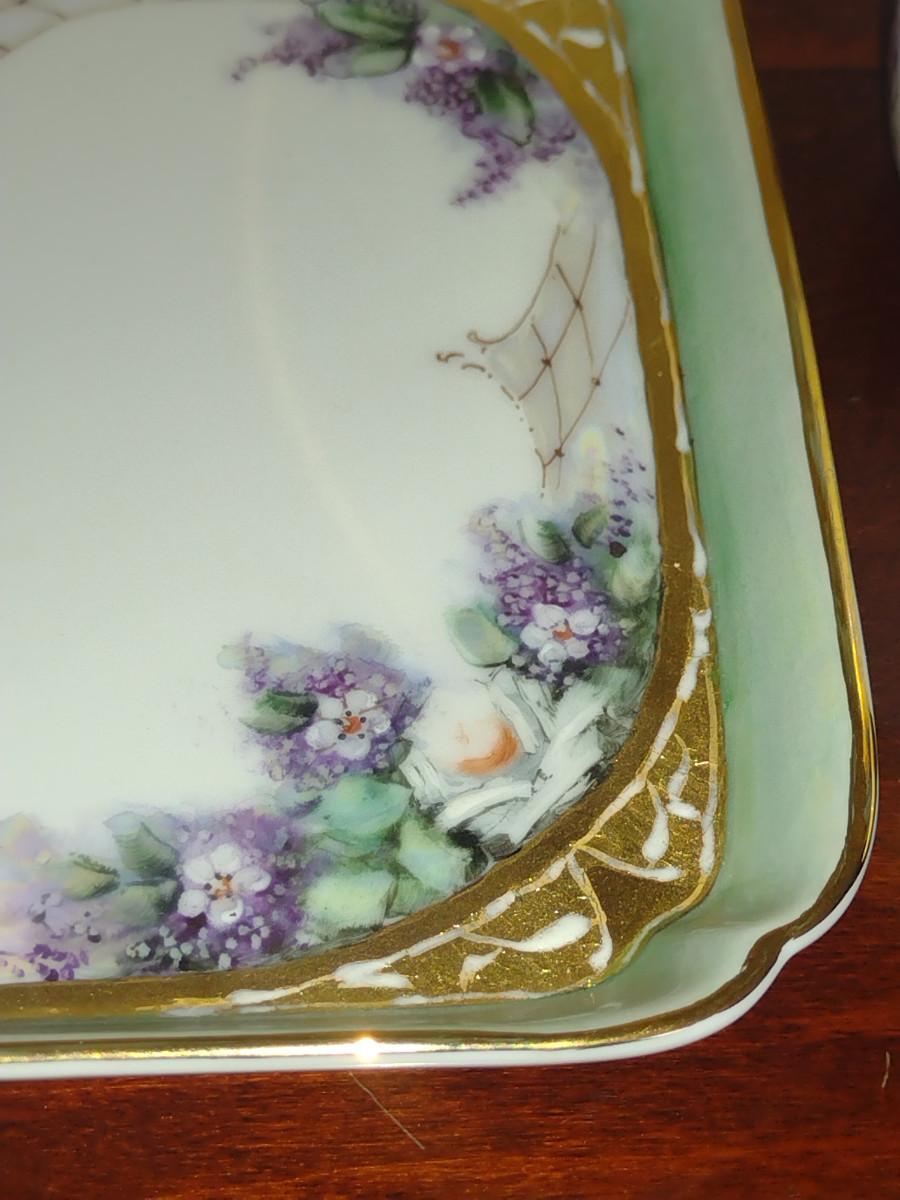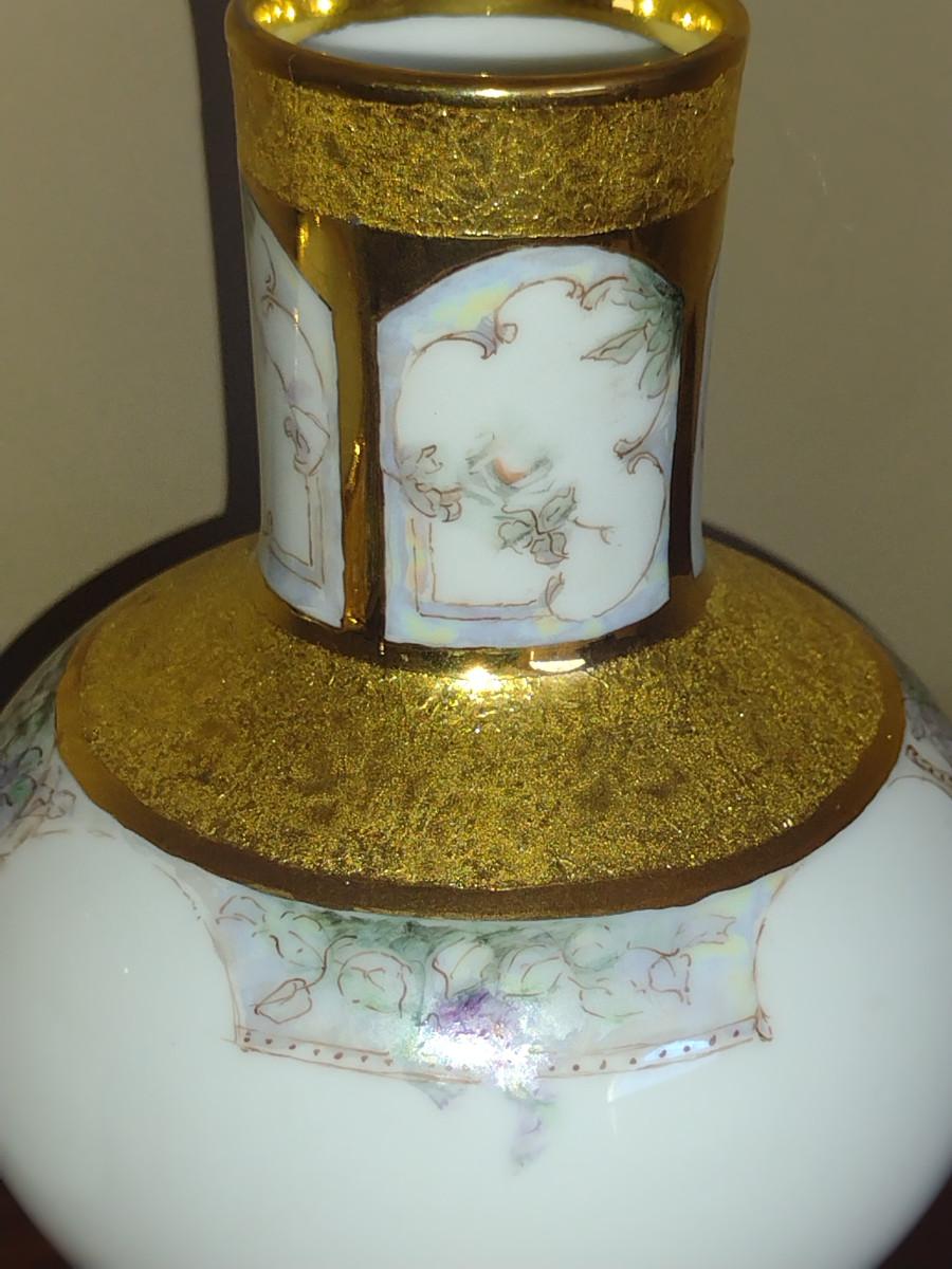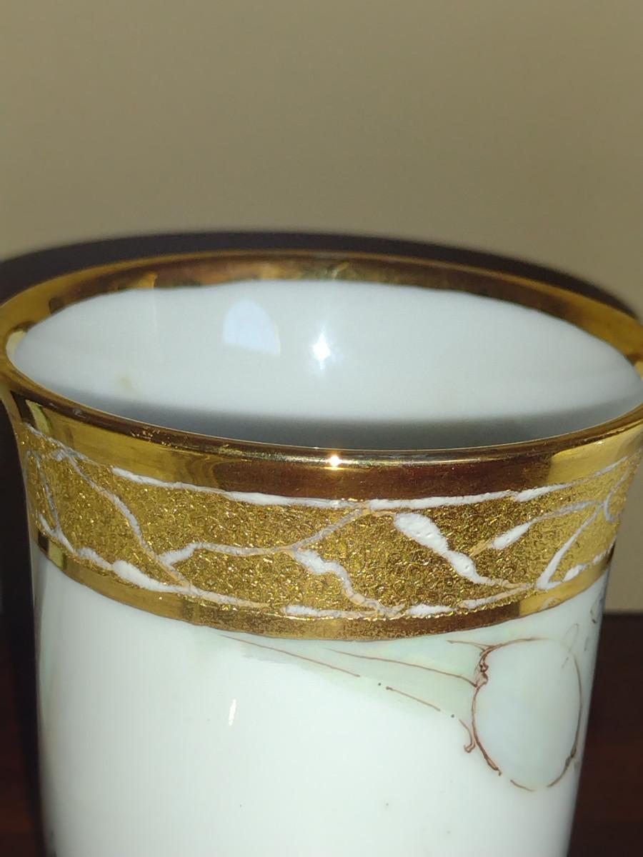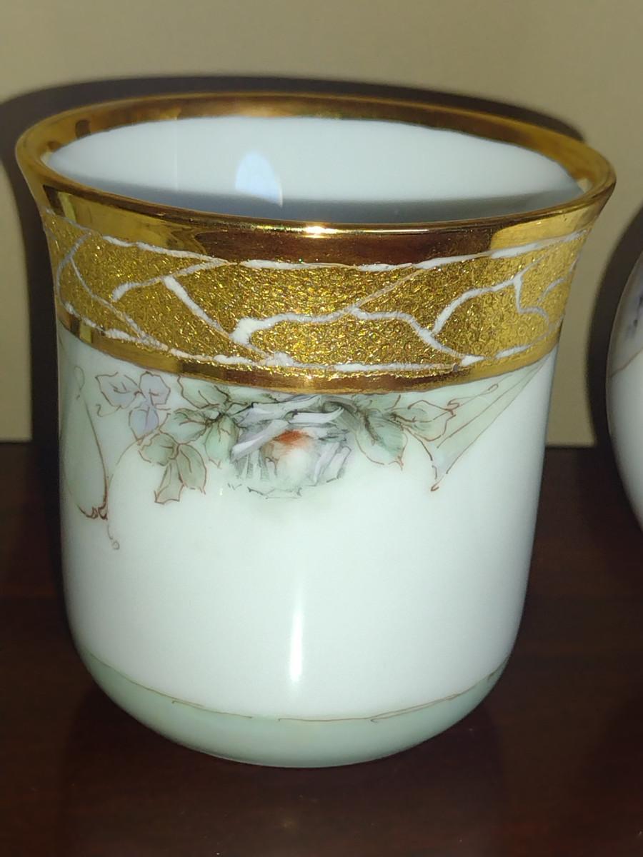 Porcelain Bedside Carafe with Cup and Tray- Hand Painted by Local Artist. Please see all pictures for condition- some possible separating of gold finish.
