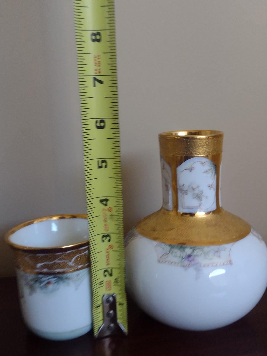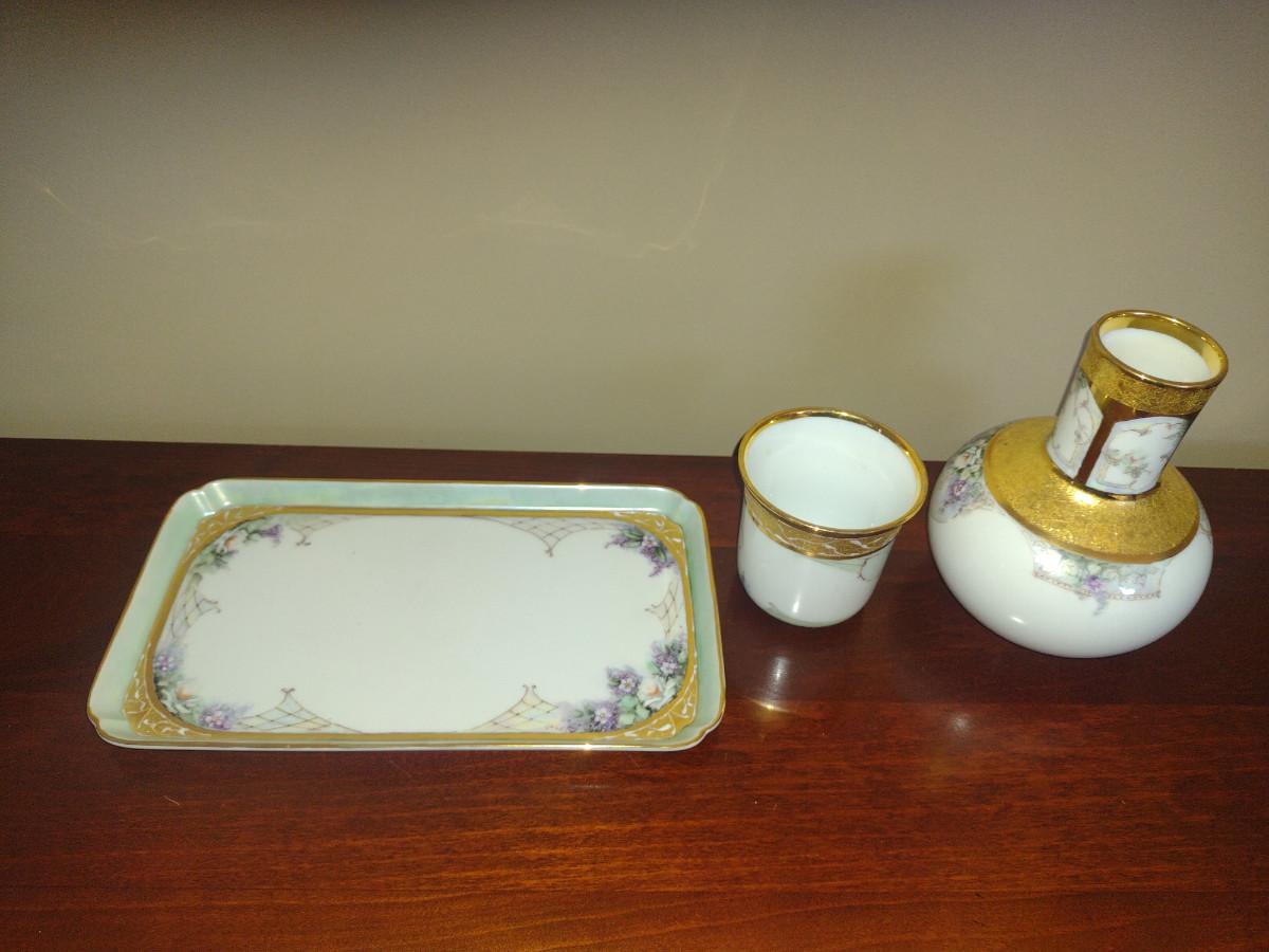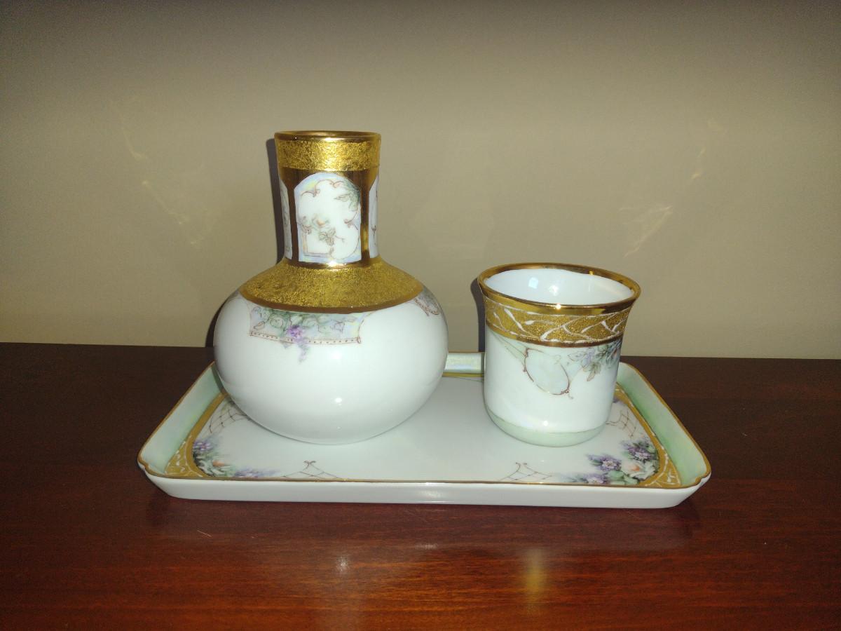 Porcelain Bedside Carafe with Cup and Tray- Hand Painted by Local Artist