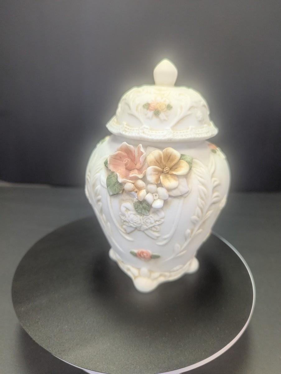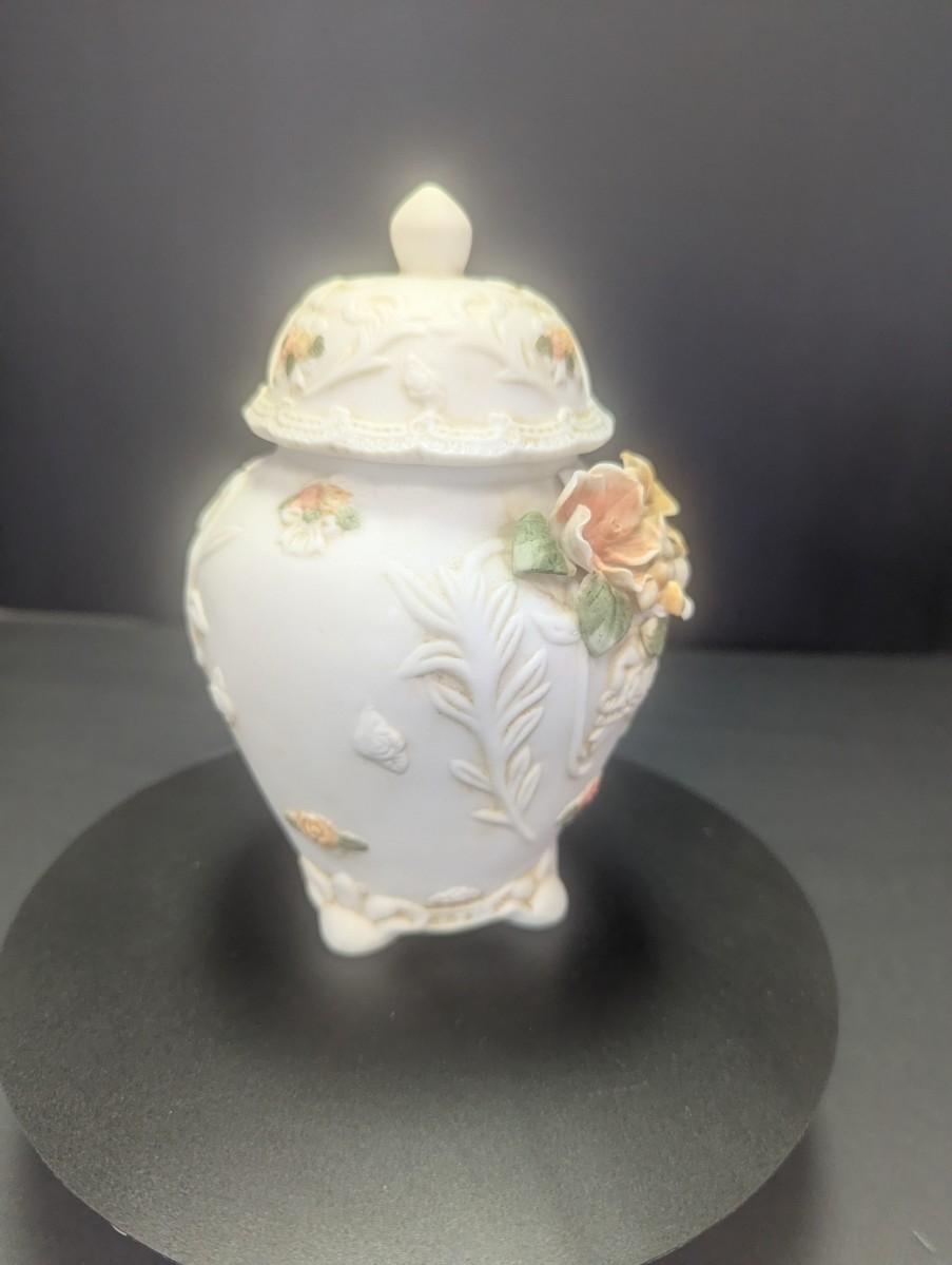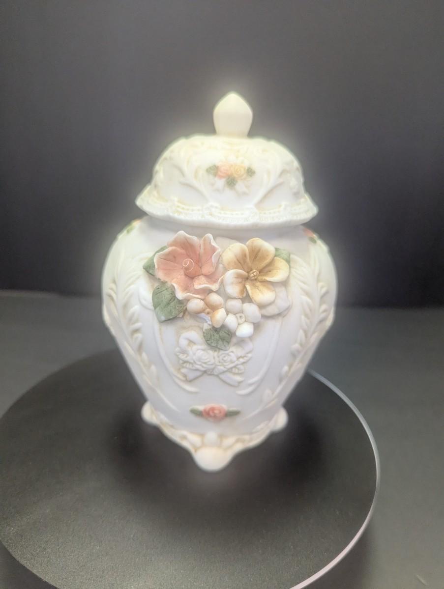 Porcelain Bisque Jar/Trinket Holder 3D Hand Painted Flowers