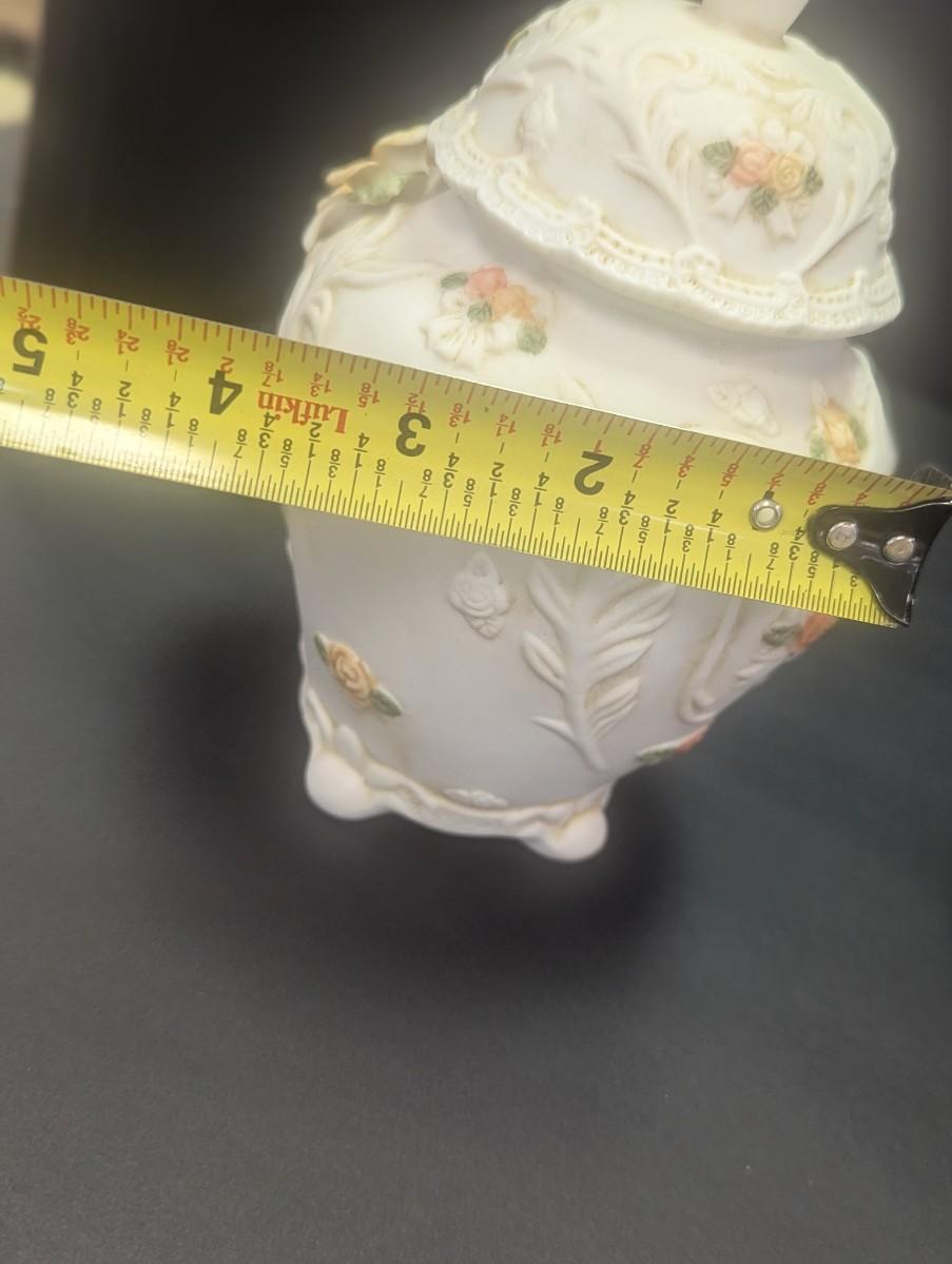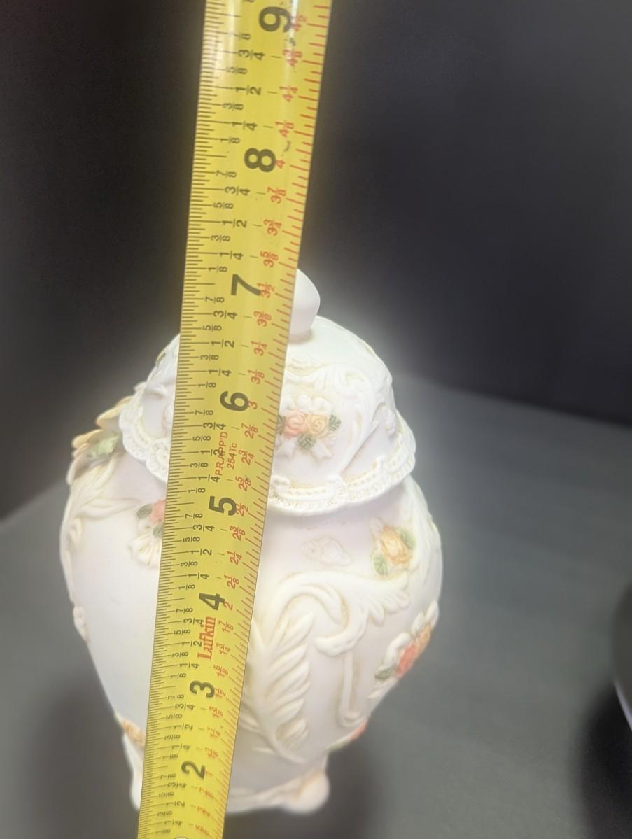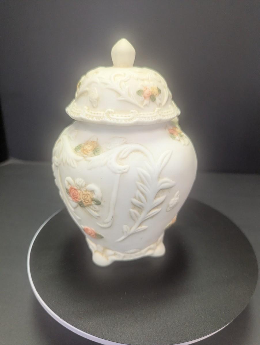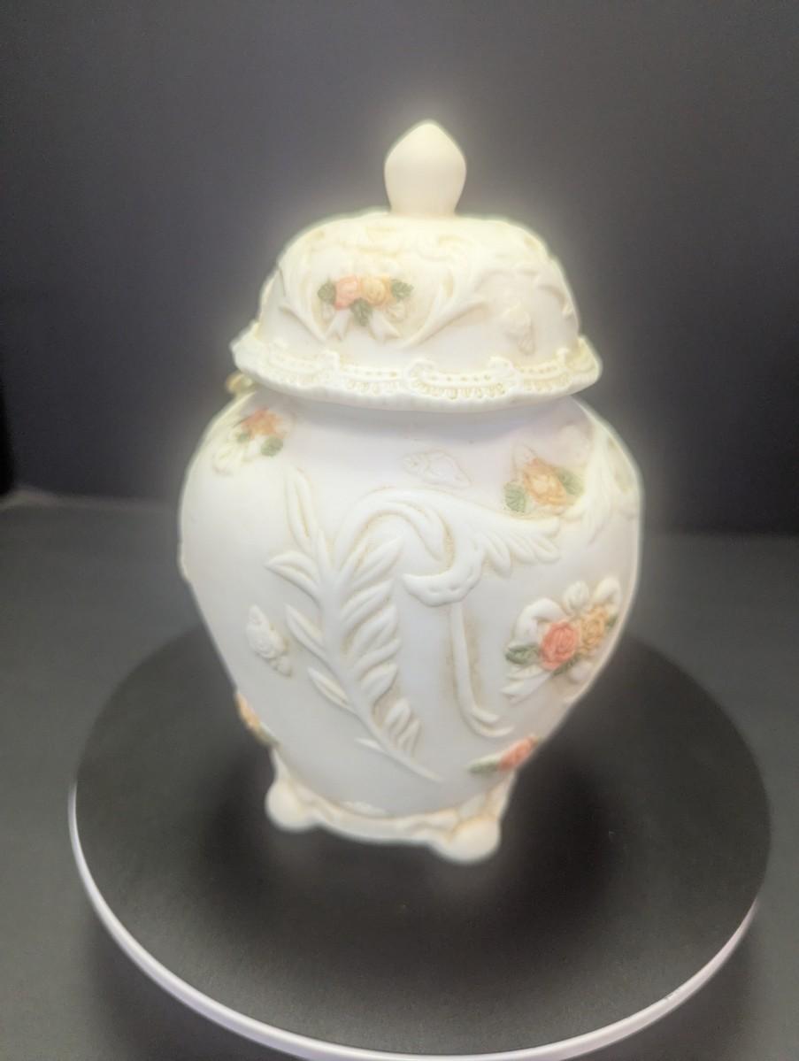 Porcelain Bisque Jar/Trinket Holder 3D Hand Painted Flowers