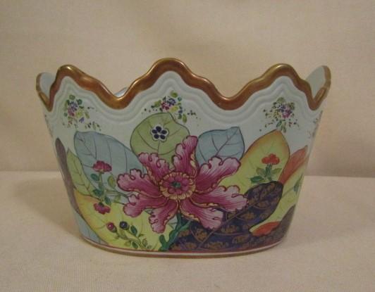 Porcelain Bowl 10"x8"x6"- Mottahedeh Lowestoft reproduction monteith bowl- Tobacco Leaf