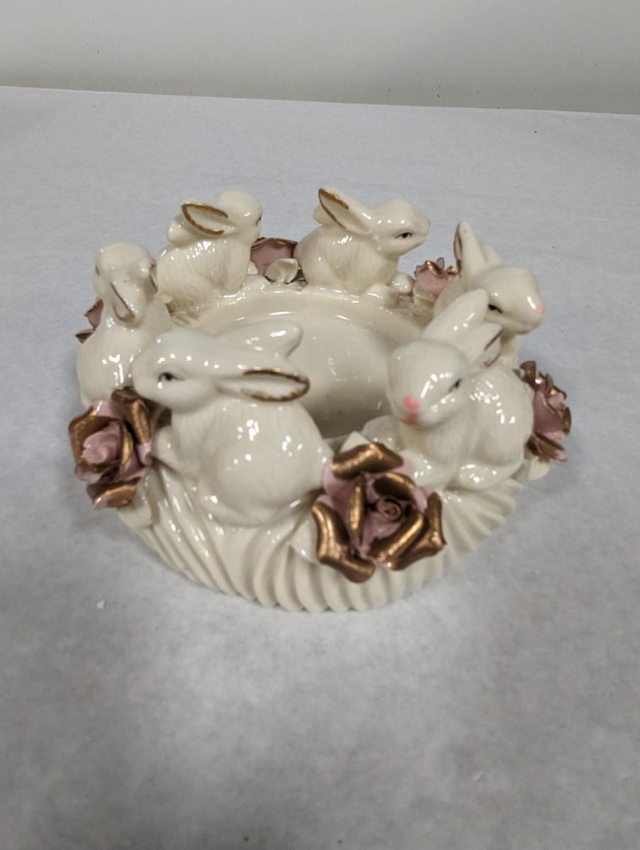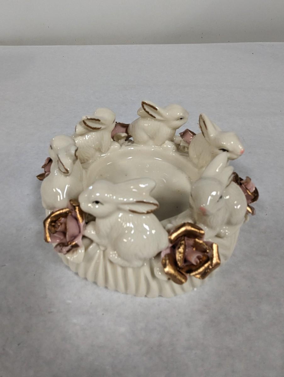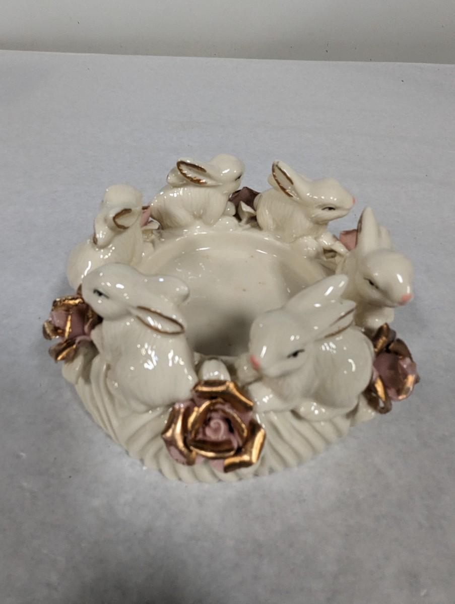 Porcelain Bunny Rabbit With Applied Roses Capodimonte Style Candle Holder Easter Choice 2