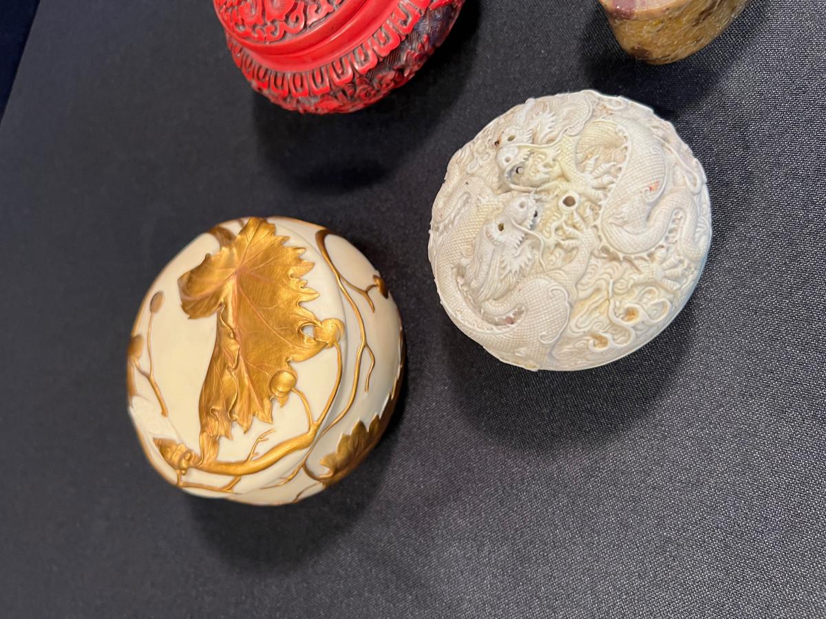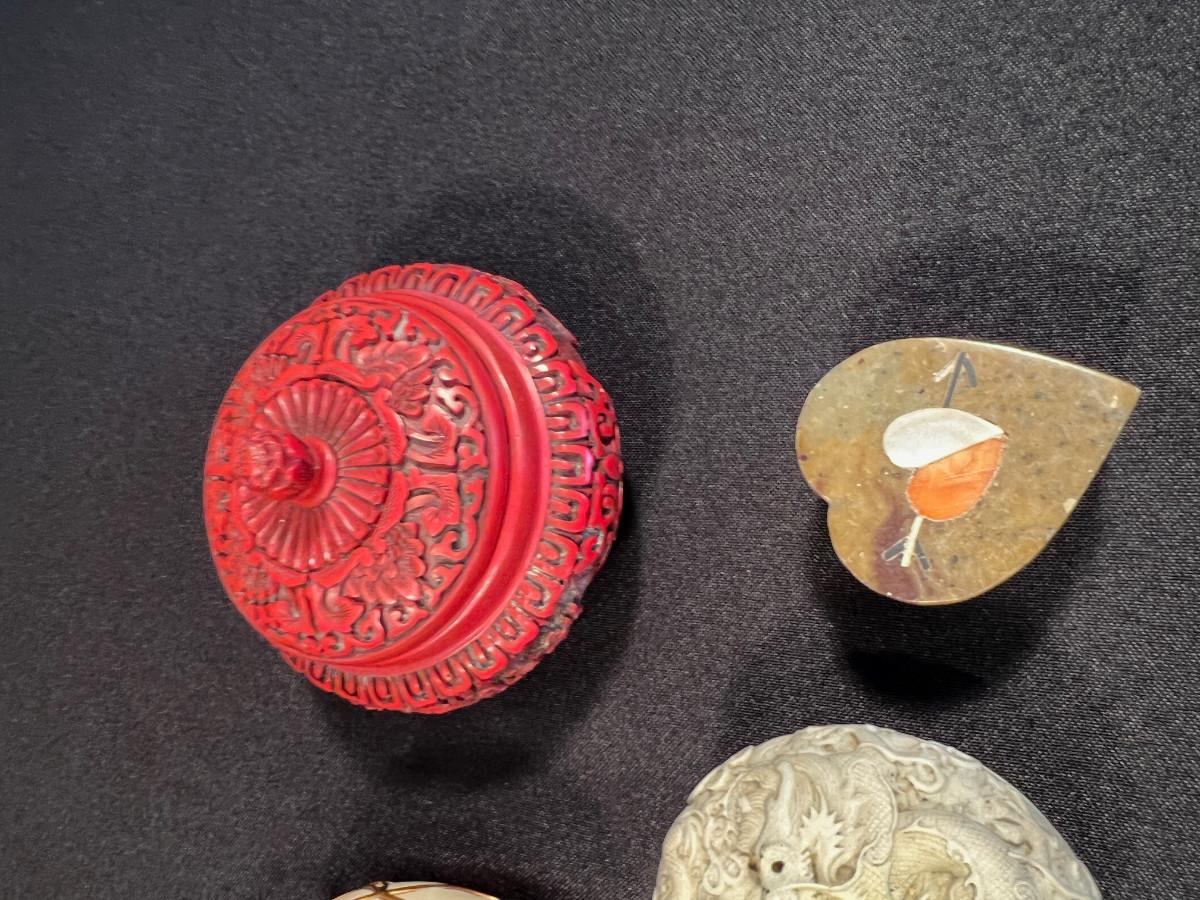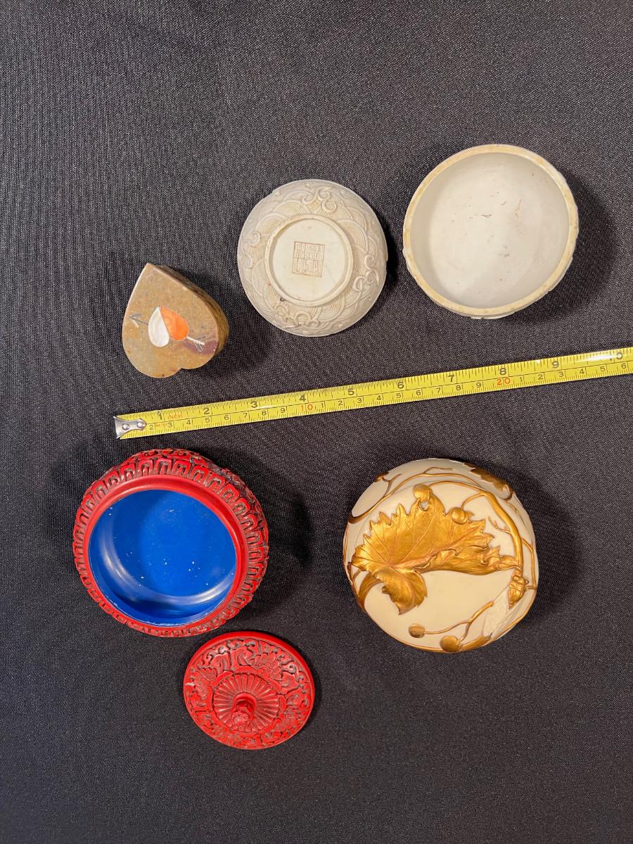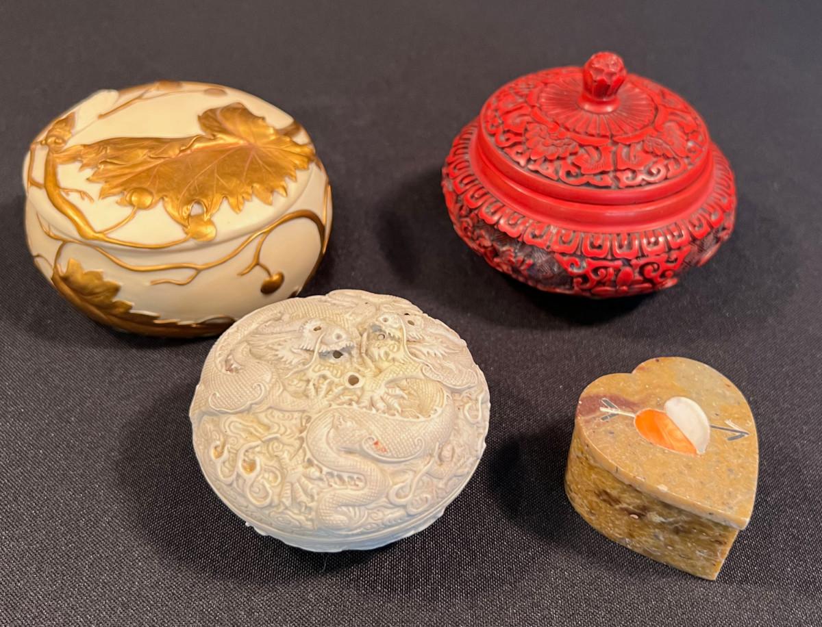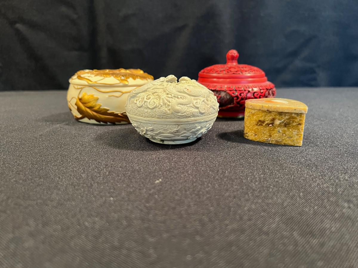 Porcelain Carved Cinnabar (4) Small Lidded Boxes