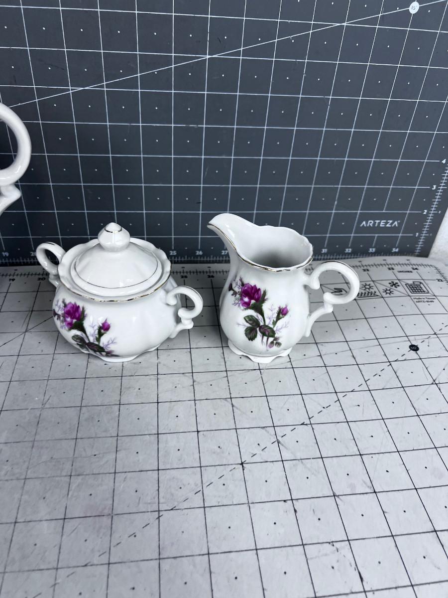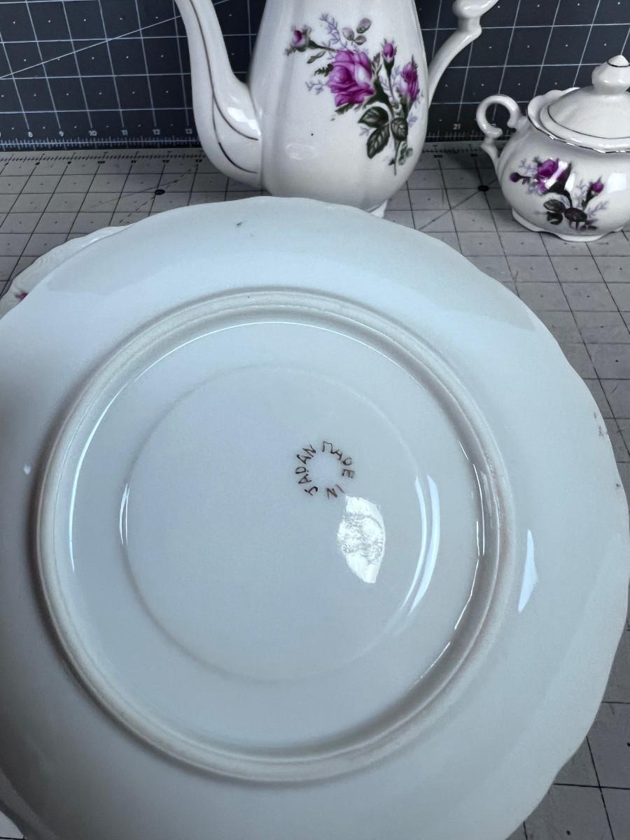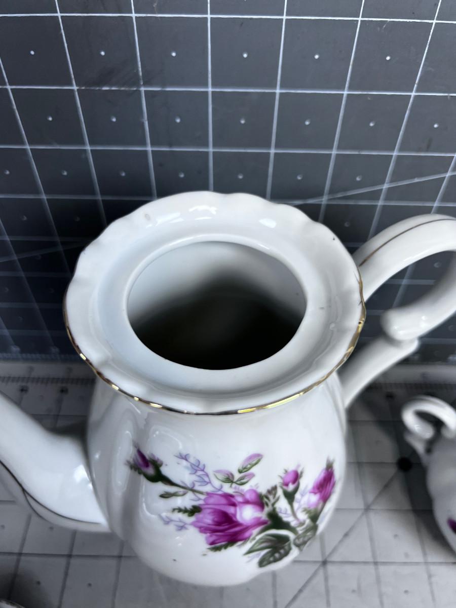Porcelain China Coffee Pot, Saucers with Cream & Sugar
