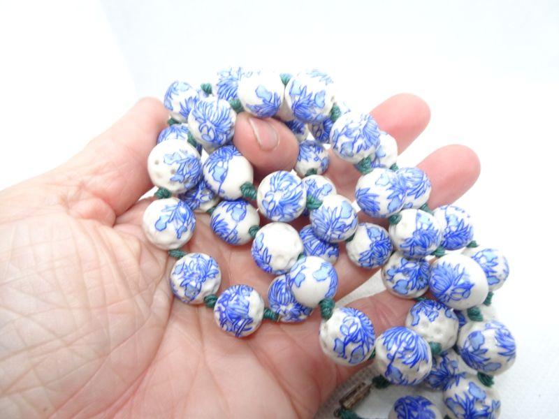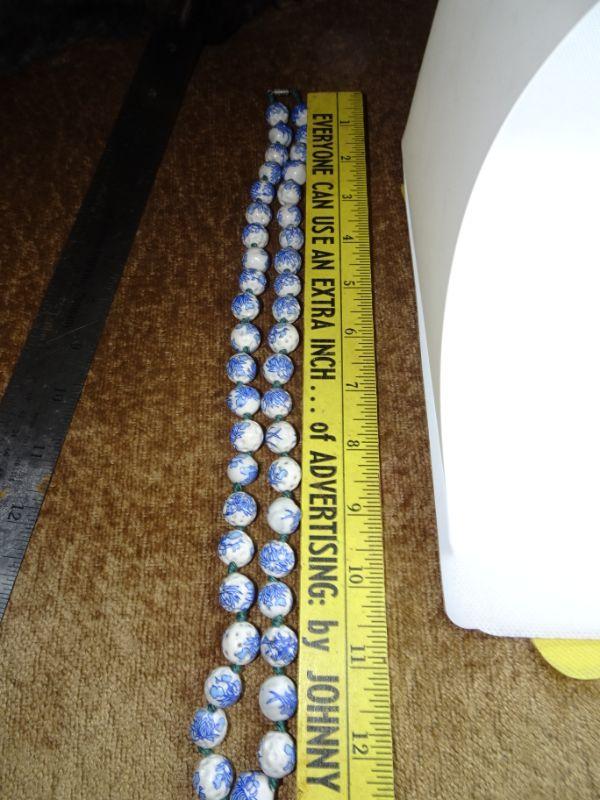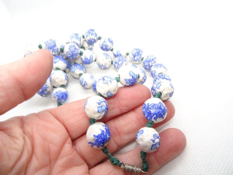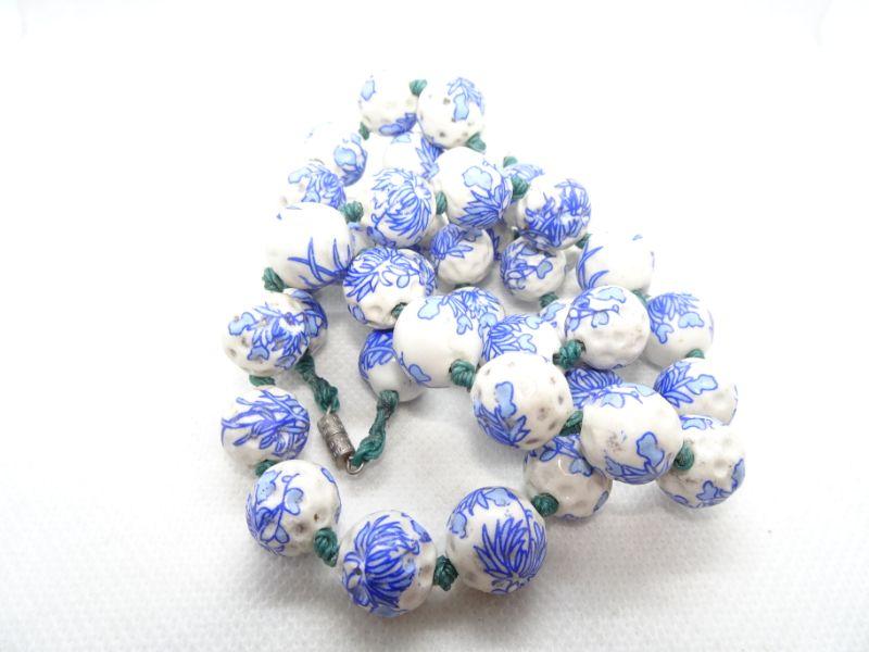 Porcelain Chipped Blue & White Chinese Beaded Necklace - Vintage