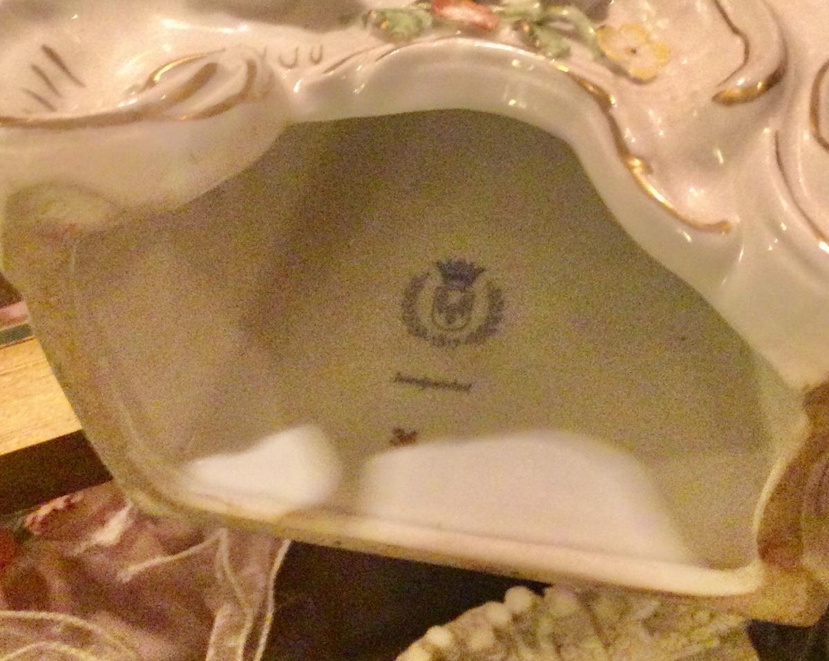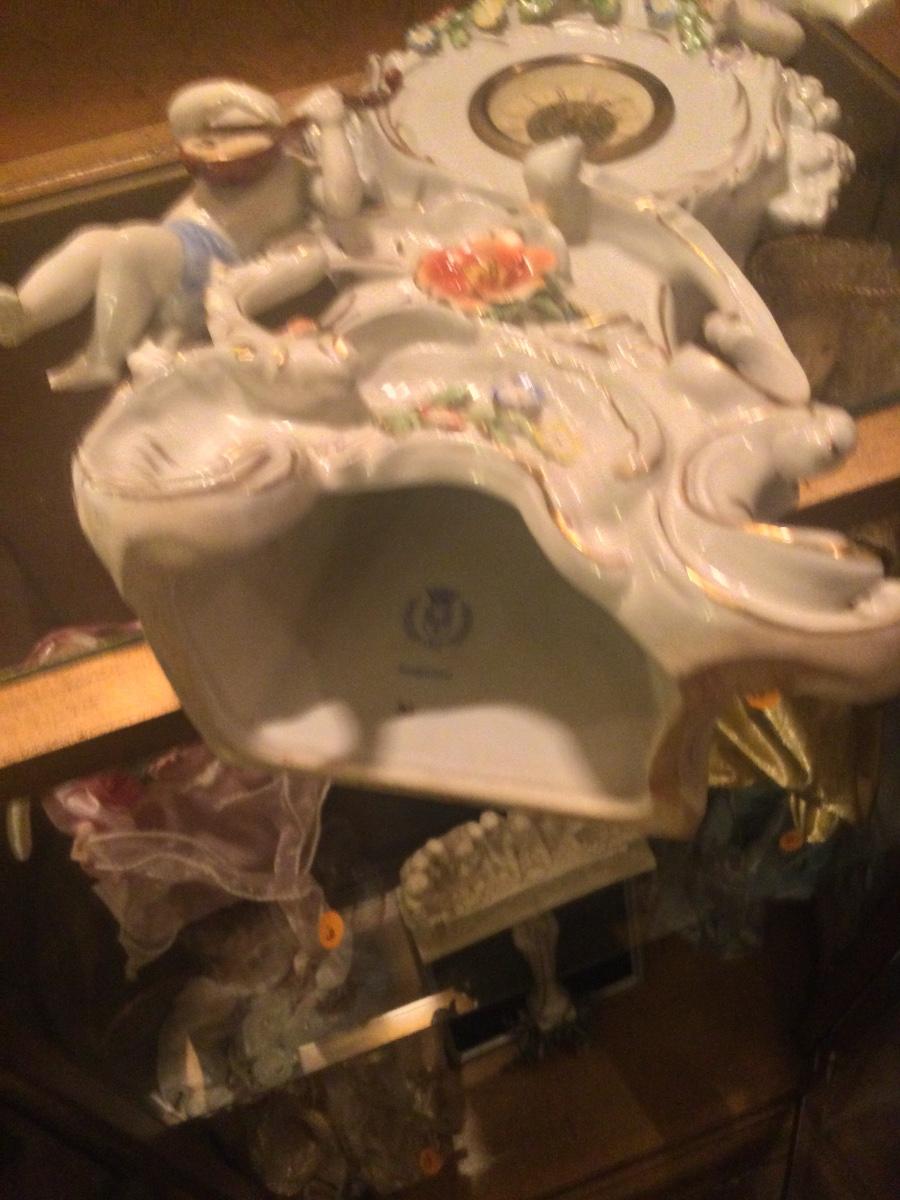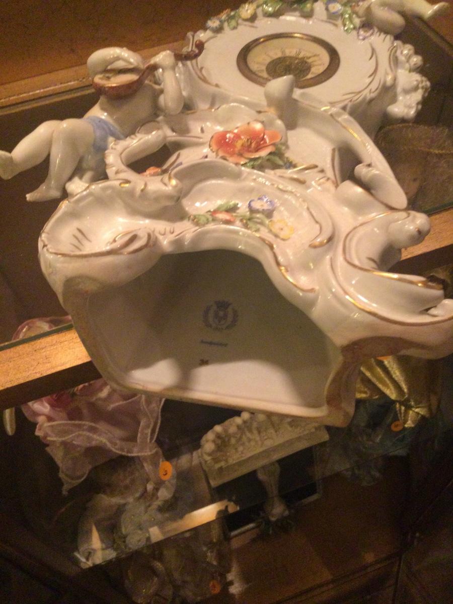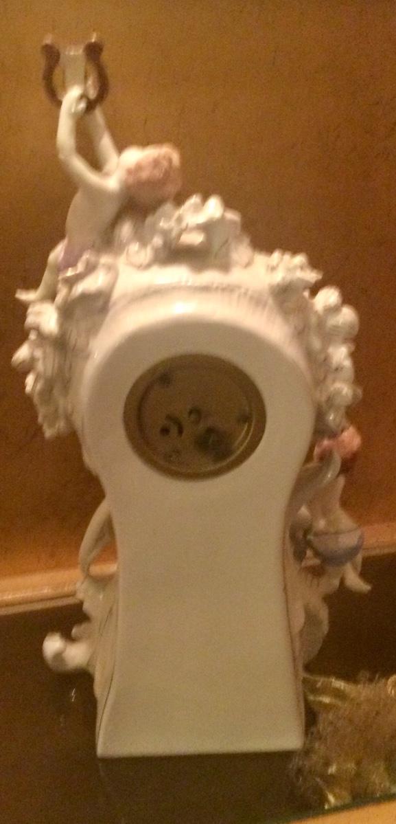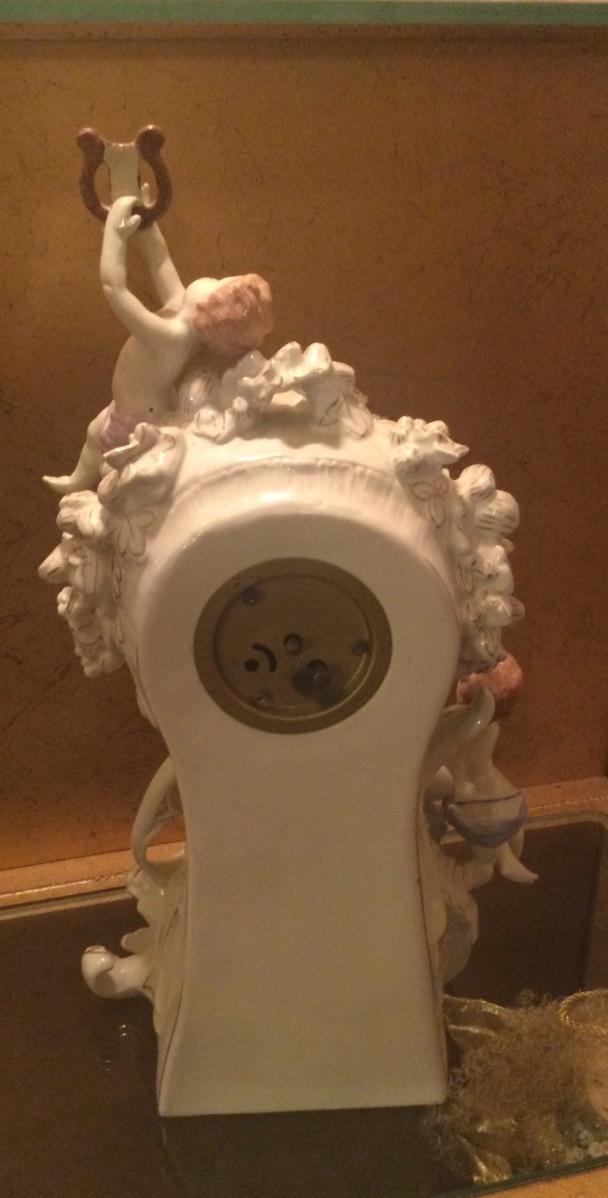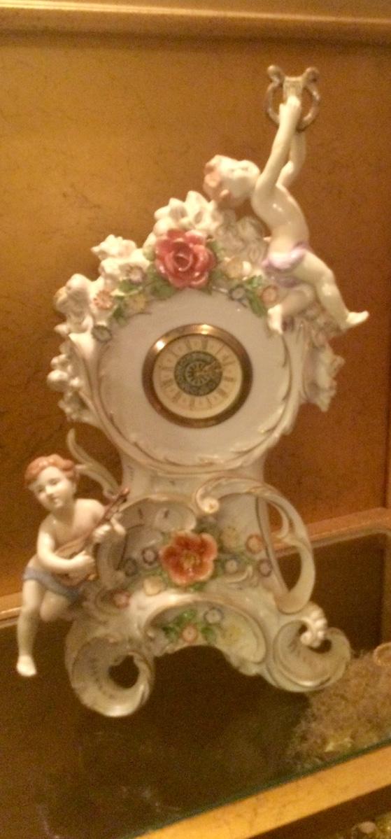 Porcelain clock with flowers and cherubs in working condition wind up clock