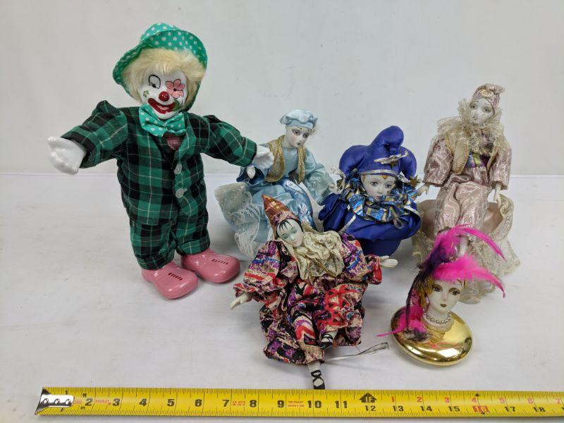 Porcelain Clown Lot, 1 Musical Clown, 1 Needs to be Fixed