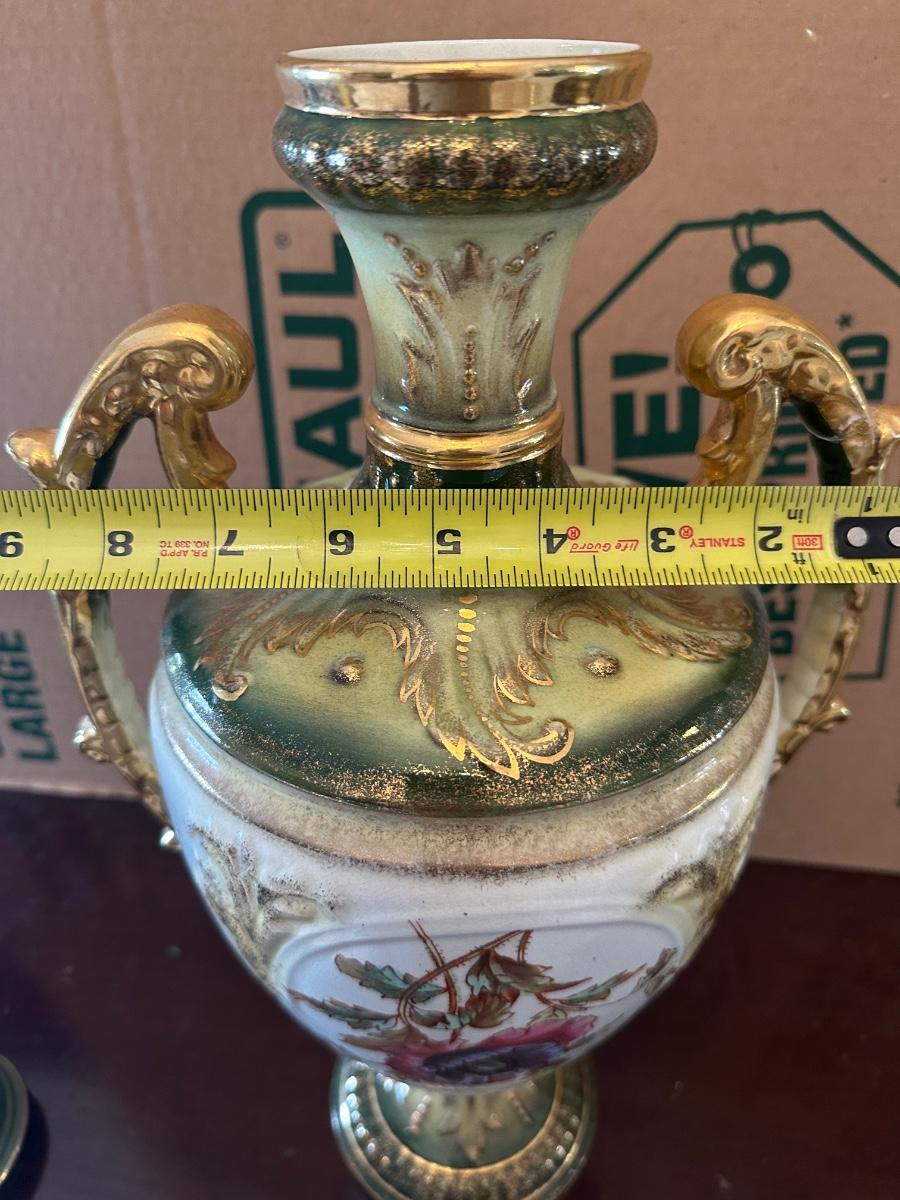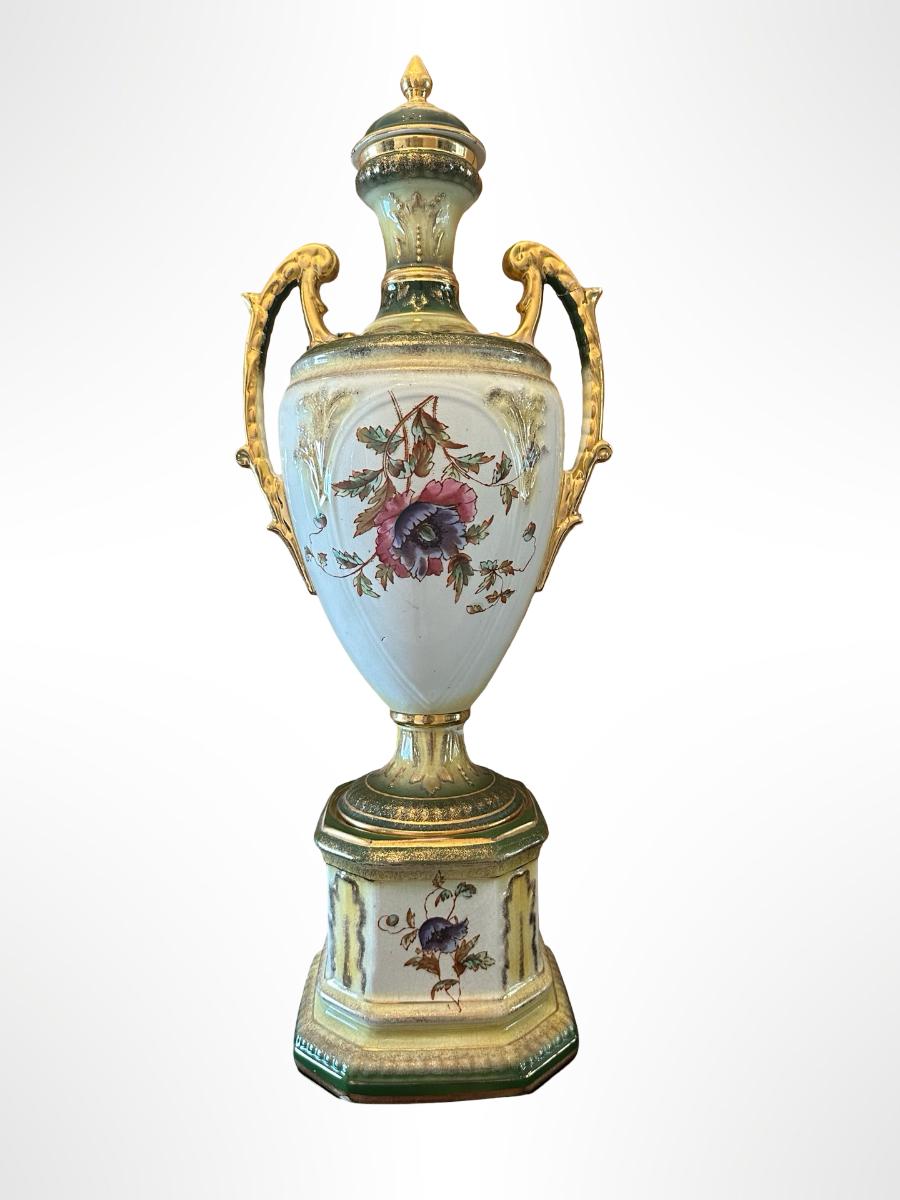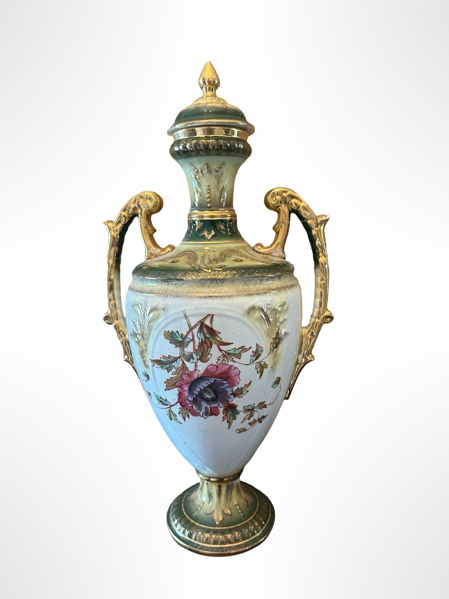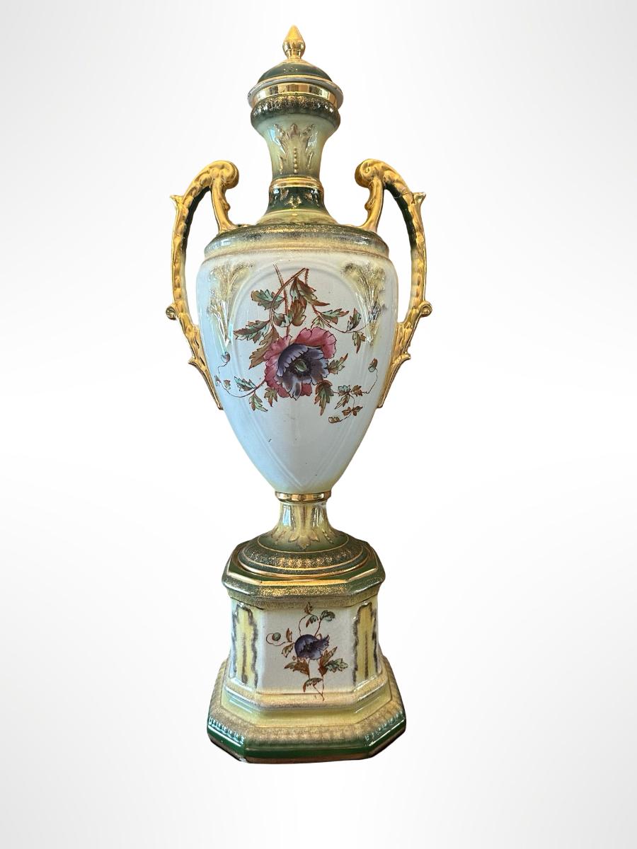 Porcelain Covered Center Urn with Hand-Painted Floral Decoration (See Description)