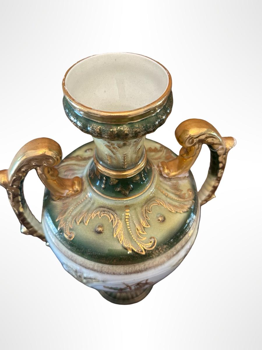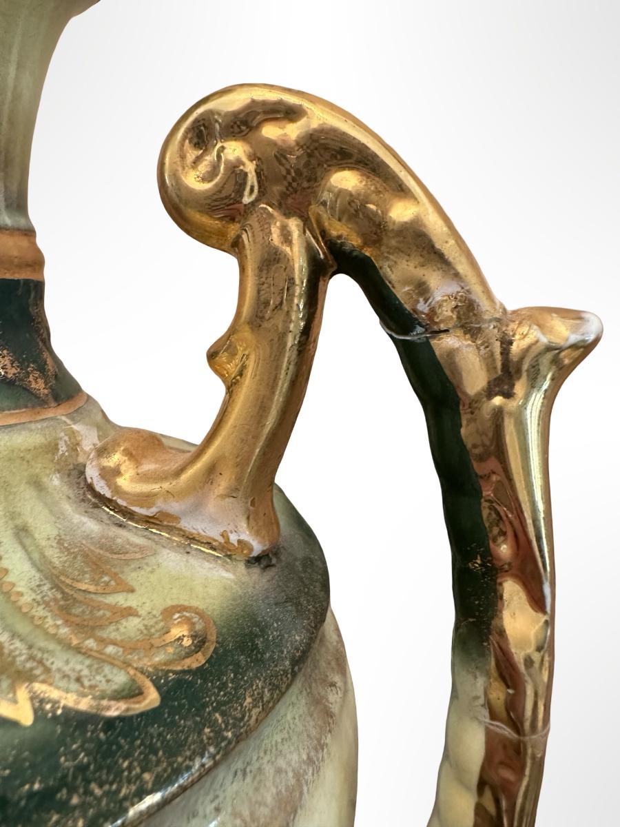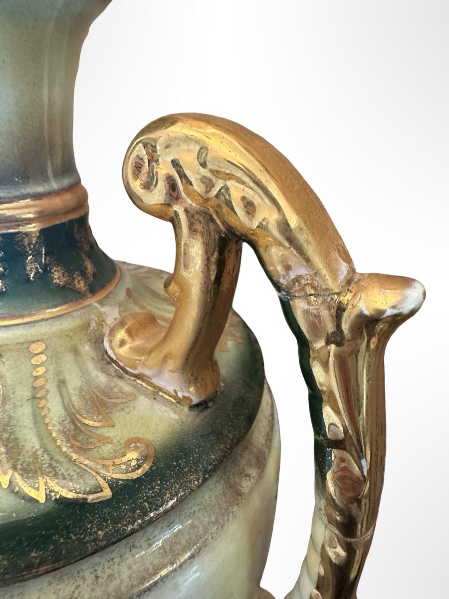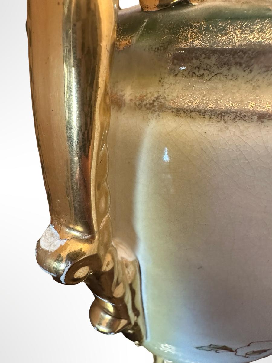 Porcelain Covered Center Urn with Hand-Painted Floral Decoration (See Description)