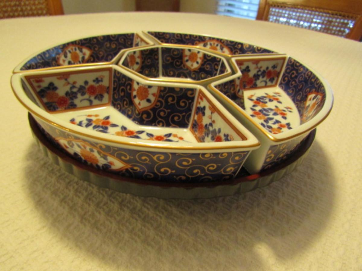 Porcelain Dip/Relish/Snack Tray on Lazy Susan- Made by OMC Japan