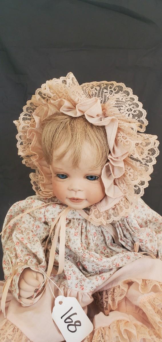 Porcelain Doll in a pink dress.