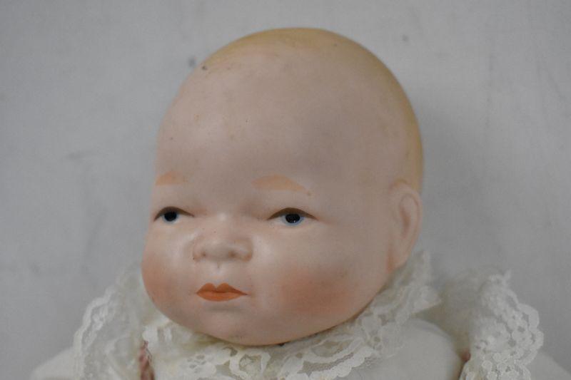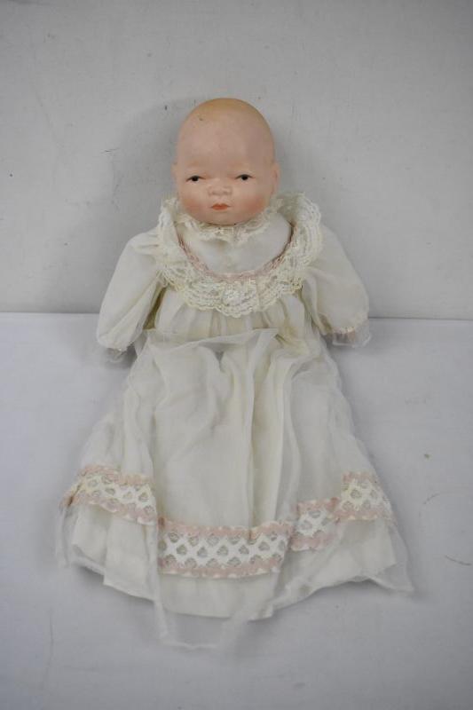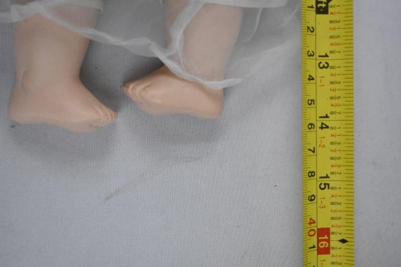 Porcelain Doll in Cream Dress, Head Hands & Feet are porcelain, body is fabric. No Brand Markings