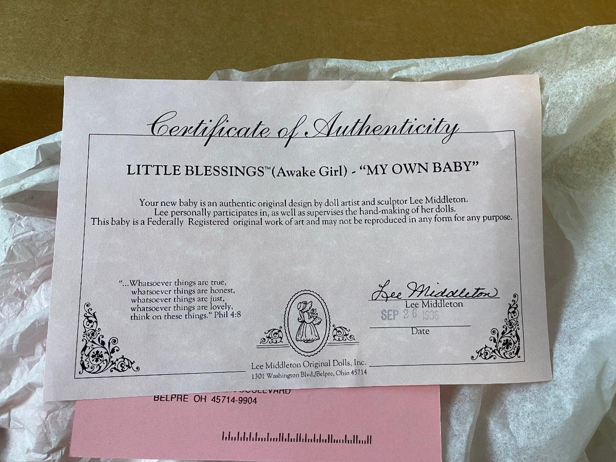 Porcelain Doll Little Blessings "My Own Baby : A Lee Middleton Original
