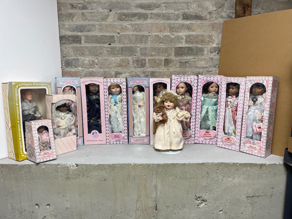 HOLY COW!!!! if you are a doll collector or a reseller this is the lot to bid on!!! Thirteen porcelain dolls, all but one in original box