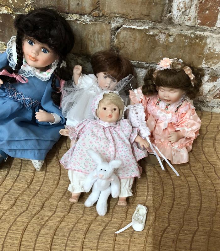 Here are several porcelain dolls in excellent condition...Ranging from 6" to 12"...