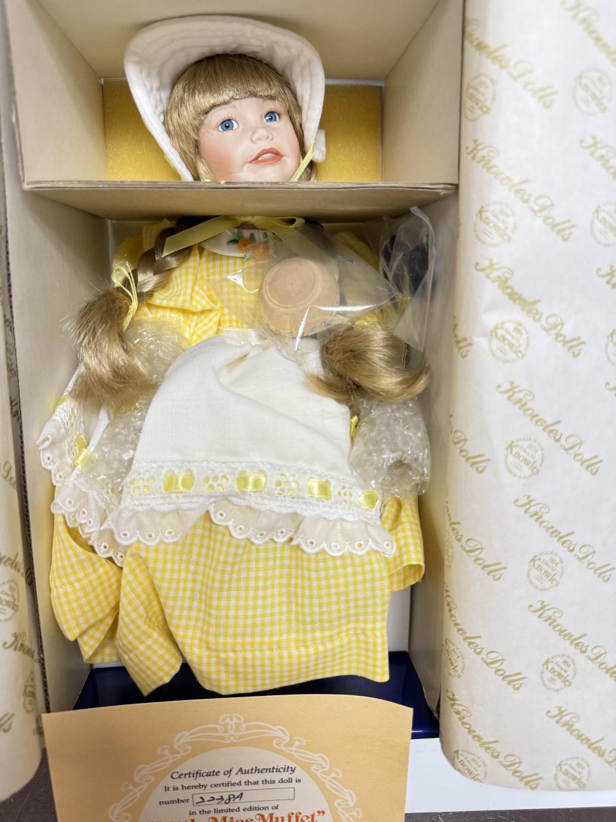 Porcelain Doll Vintage Doll Children from Mother Goose 1989 Knowles- Little Miss Muffet Porcelain Doll by Yolanda Bello