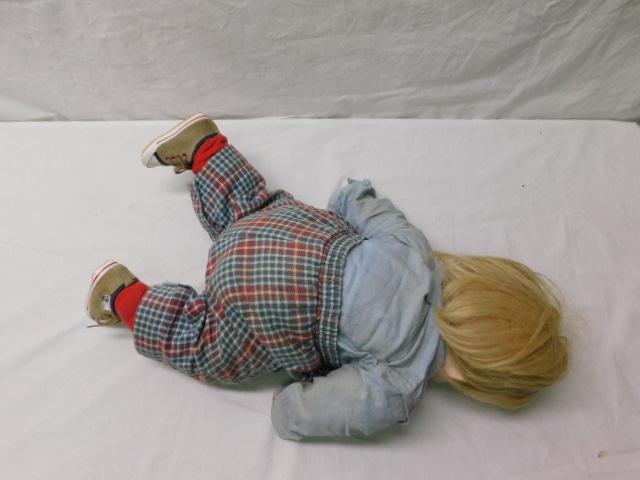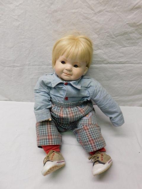 Porcelain Doll with Blue Glass Eyes and Button Hinged Limbs
