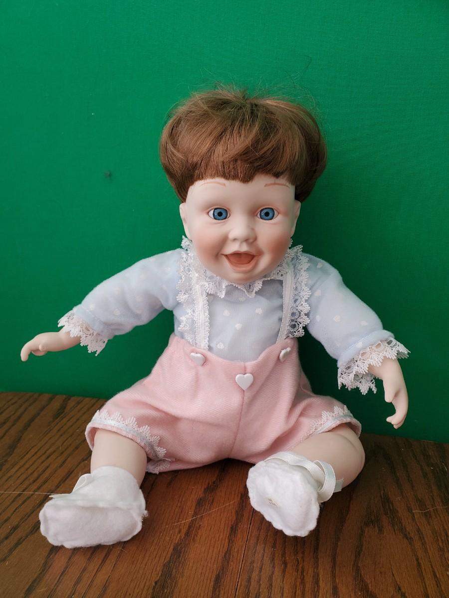 Porcelain Doll With Blue Hearted Shirt