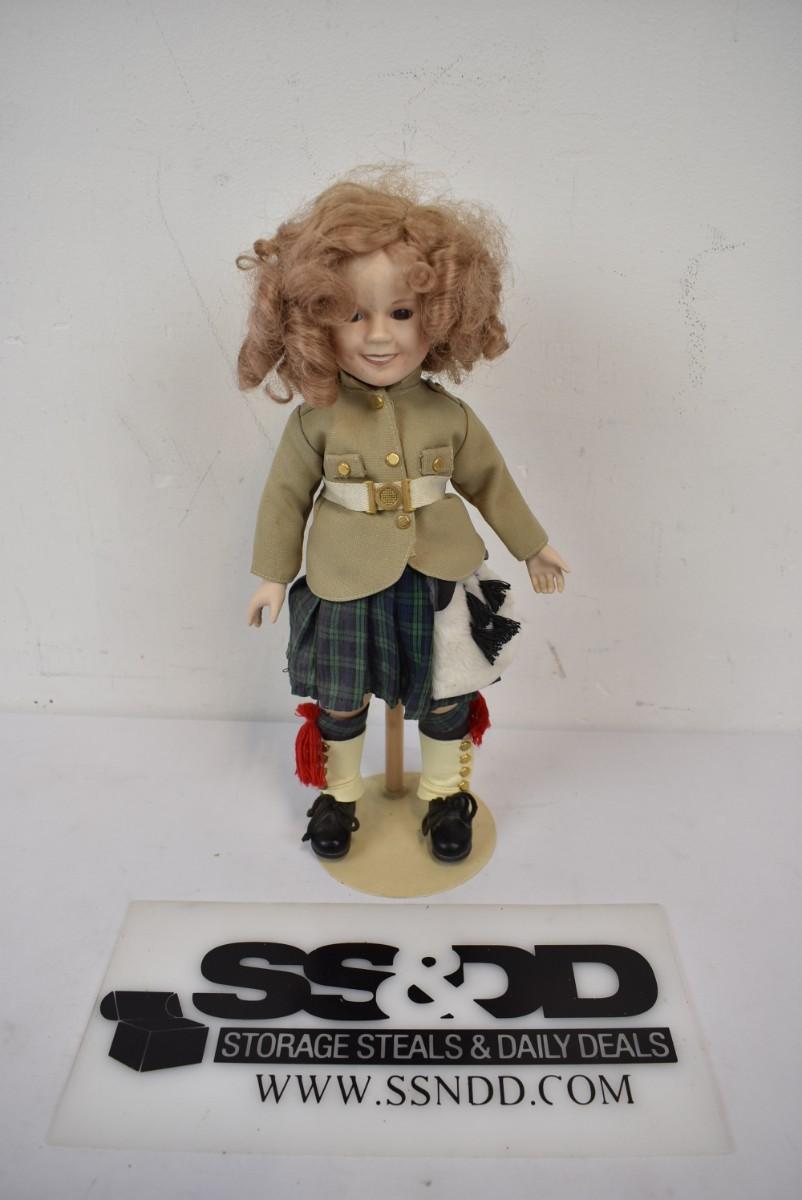 Porcelain Doll with Stand (Shirley Temple?) 14" tall