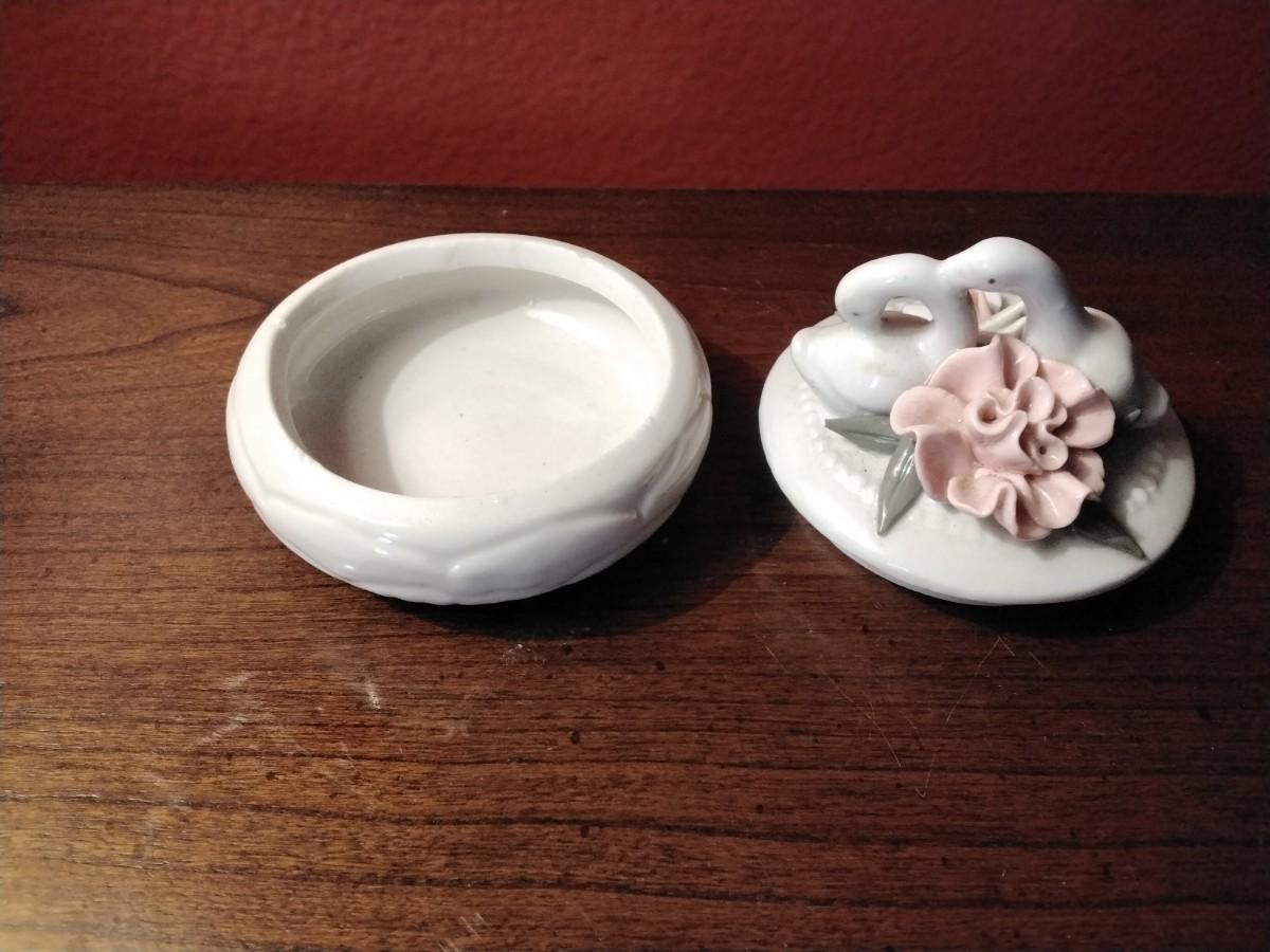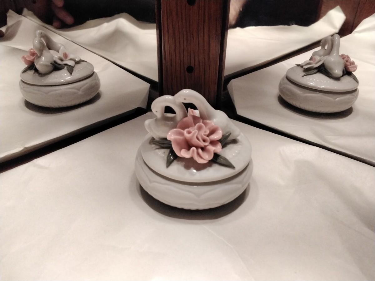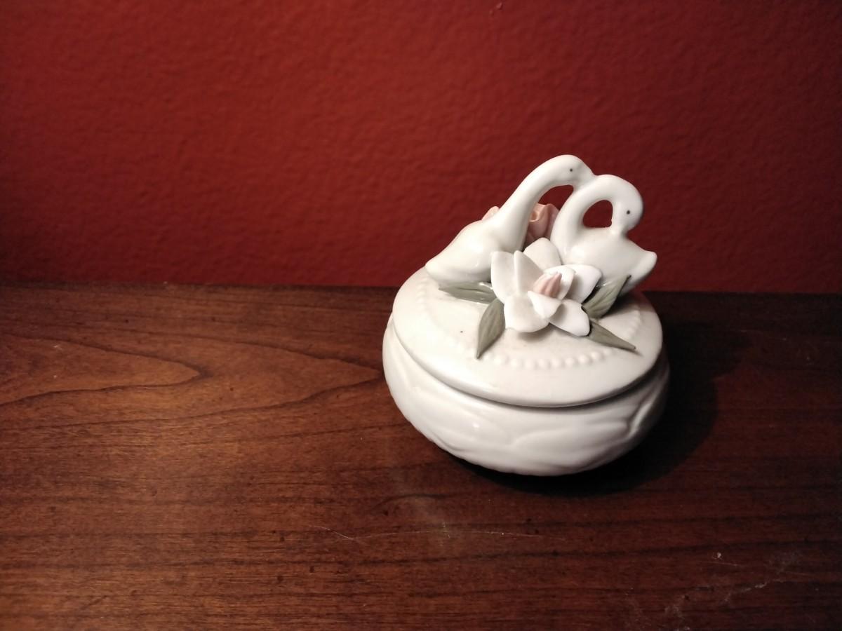 Porcelain Dual Swan and Roses Trinket Box
