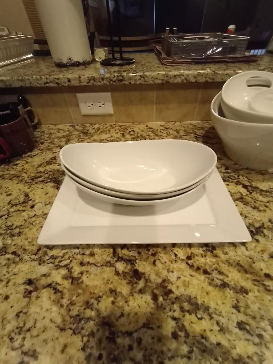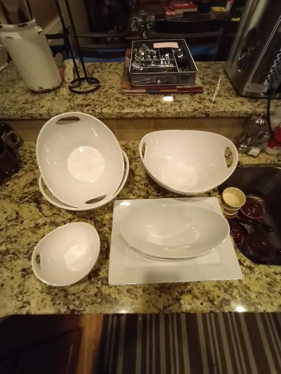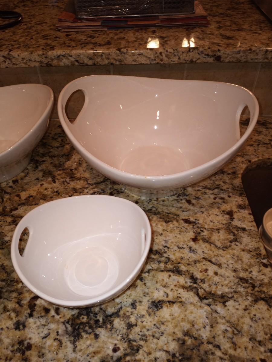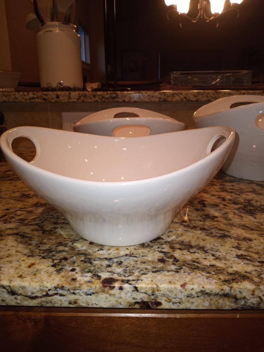 PORCELAIN EVERYDAY SERVEWARE OVAL BOWLS AND PLATTER FOUR WITH HANDLES