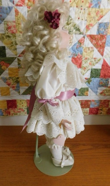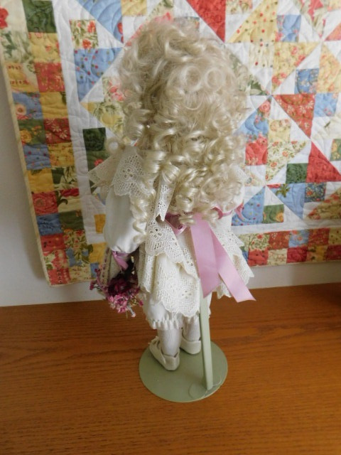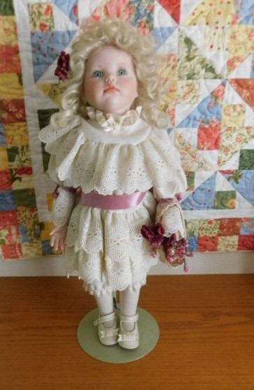 Porcelain Face and Hands Blonde Doll with Stand 18"