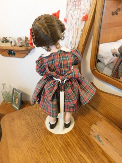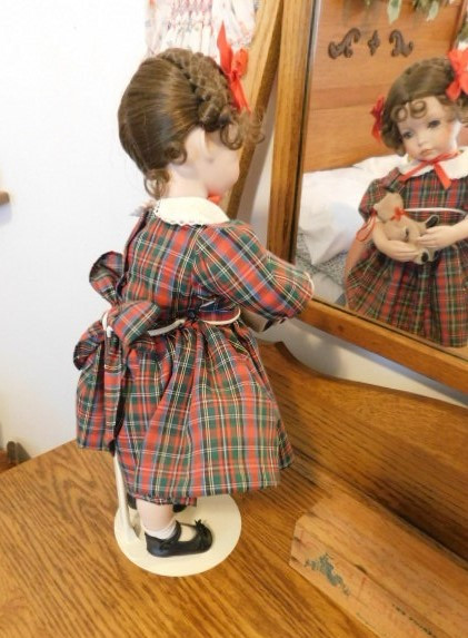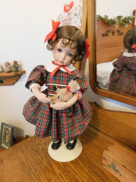 Porcelain Face and Hands Brunette Doll with Stand 18"