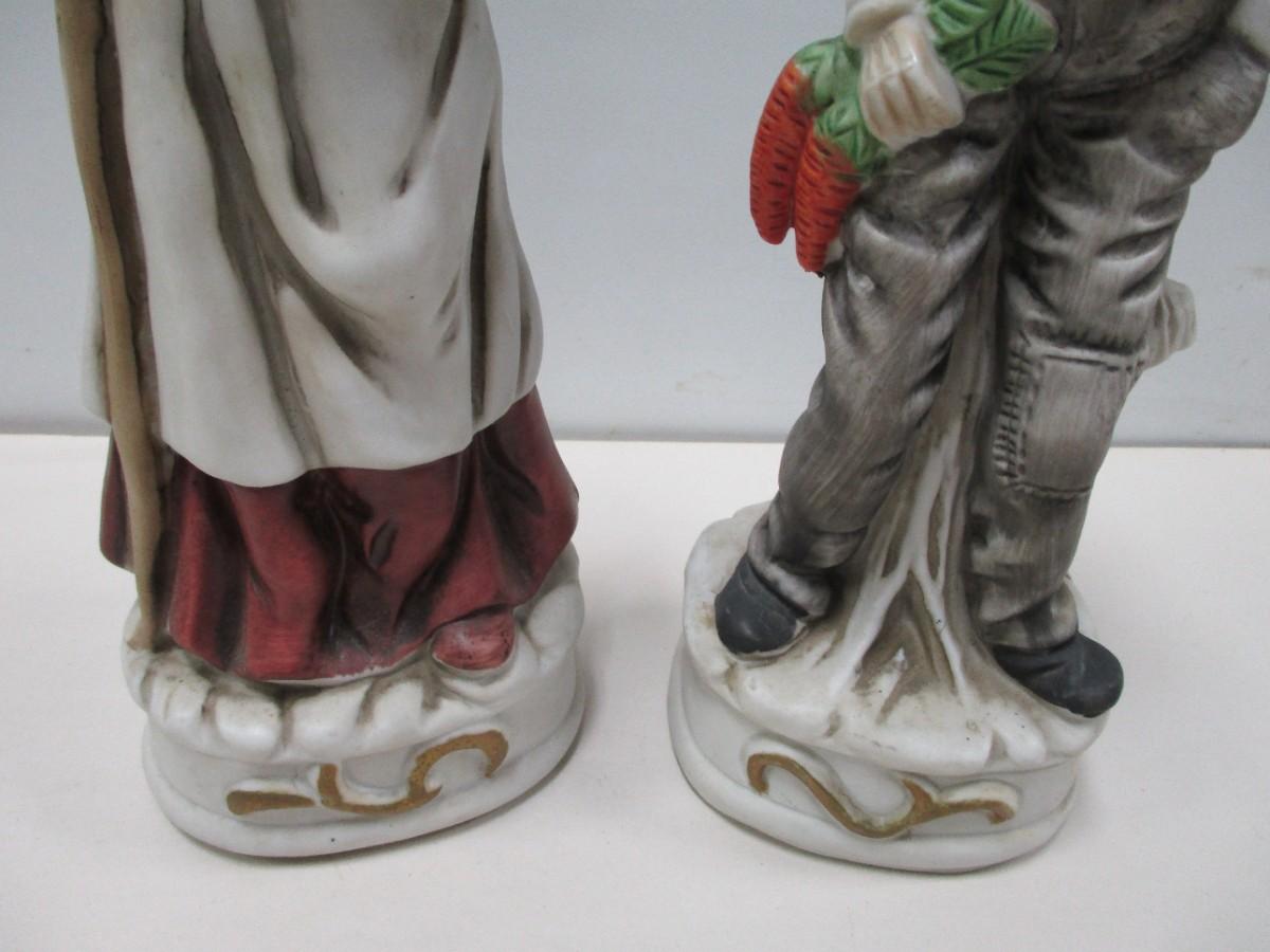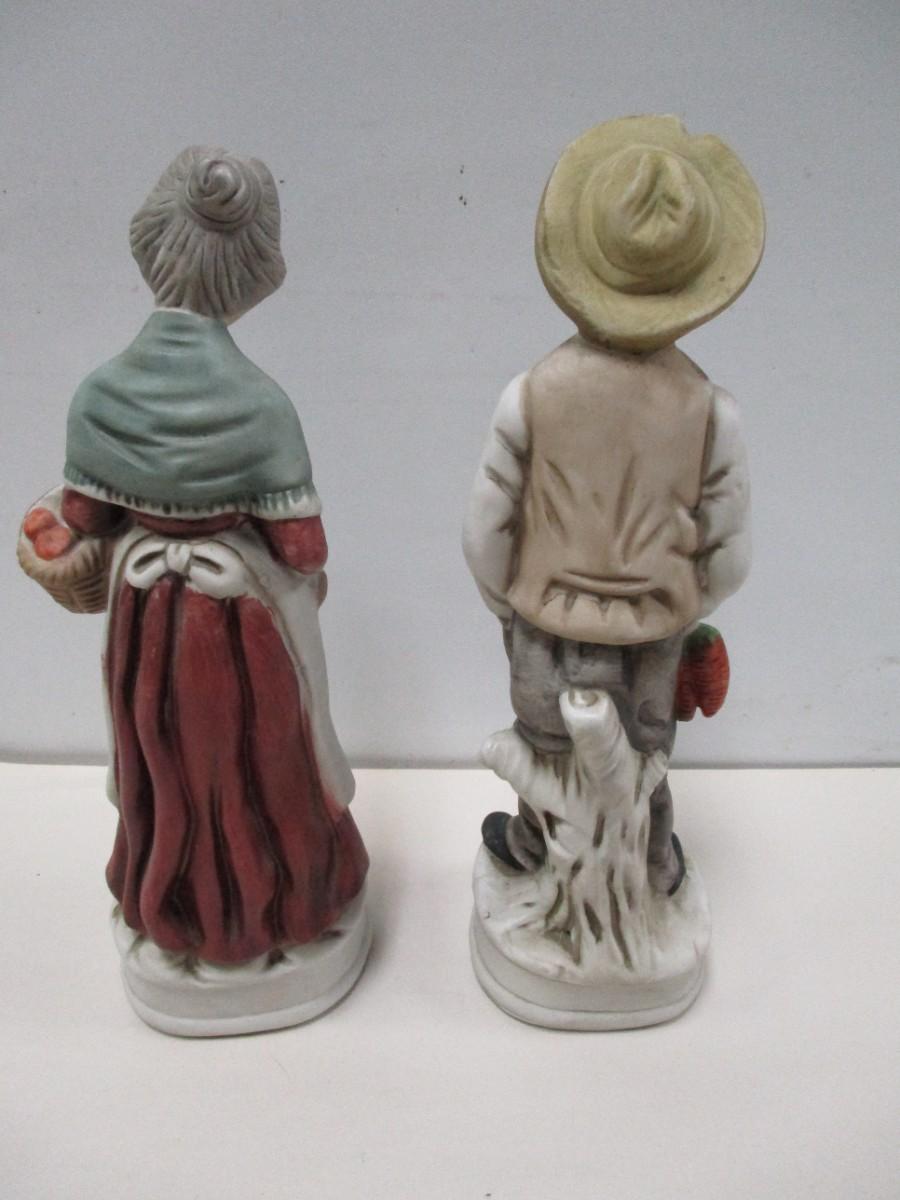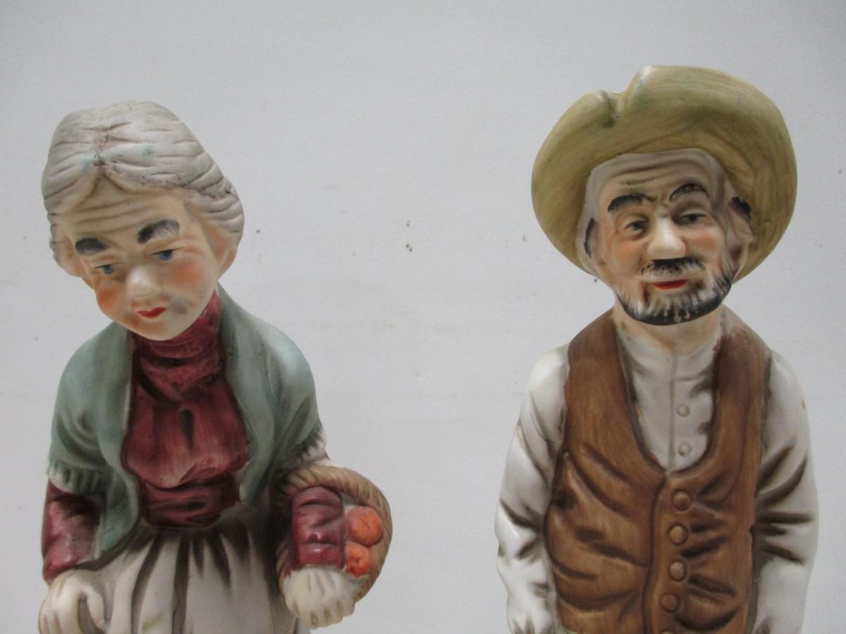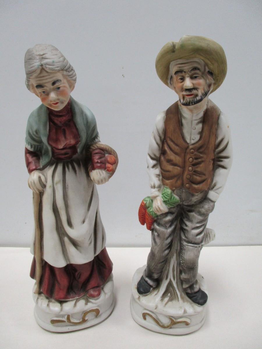 Porcelain Figures Elderly Man and Older Woman Carrying Apples