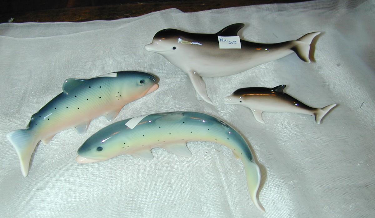 Porcelain Figurines - 2 Fish & 2 Dolphins