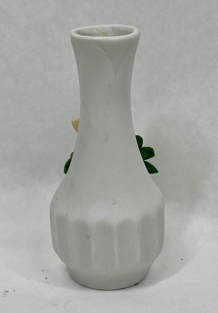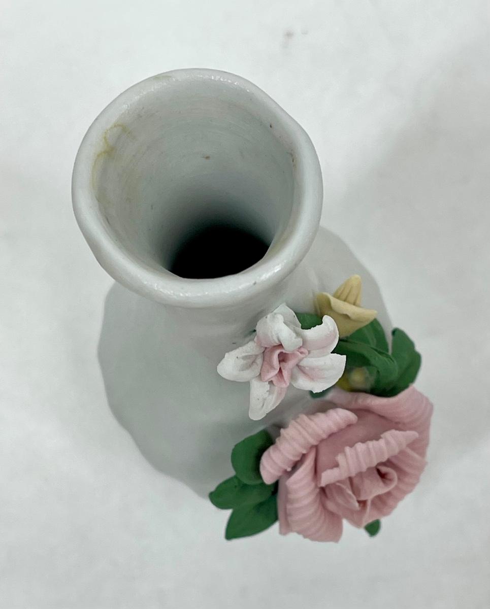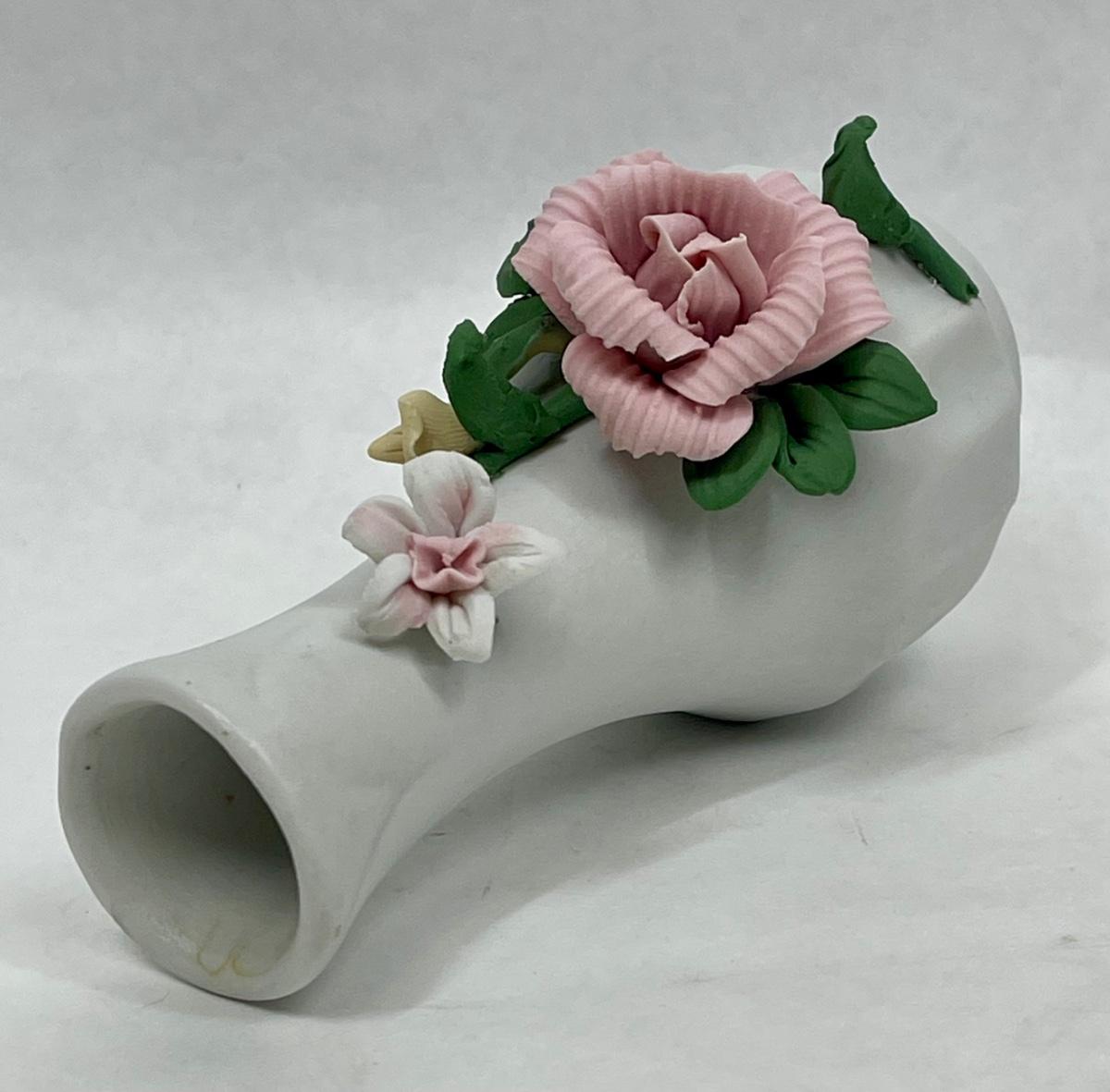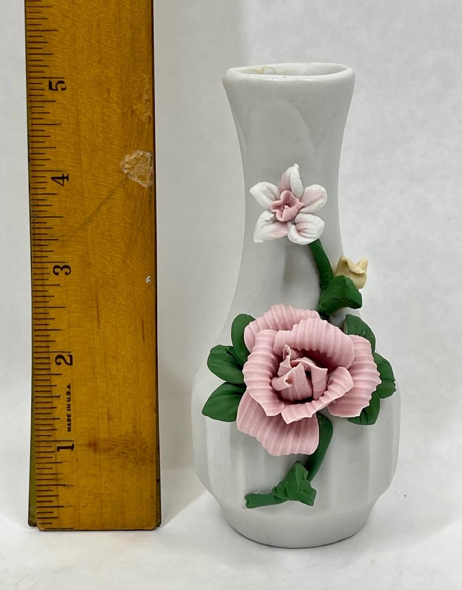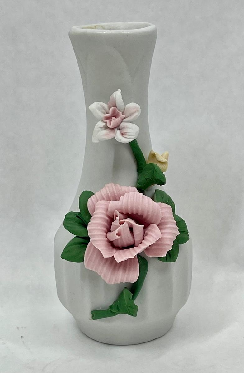 Porcelain Floral Bud Vase with Pink Rose Motif