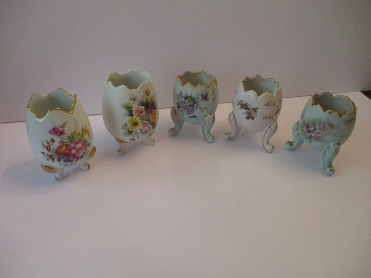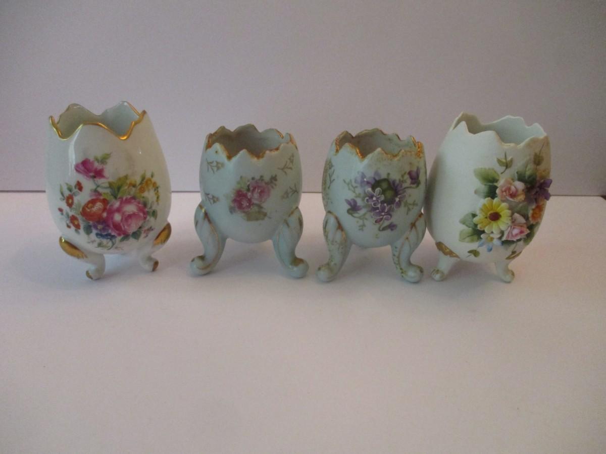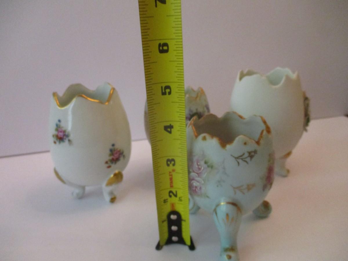 Porcelain Footed Egg Vases Limoges Castel Inarco & Lefton China Hand Painted