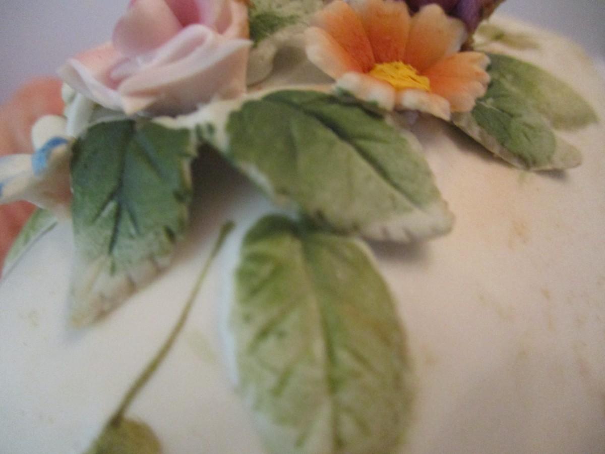 Some of the flowers on an egg are chipped
