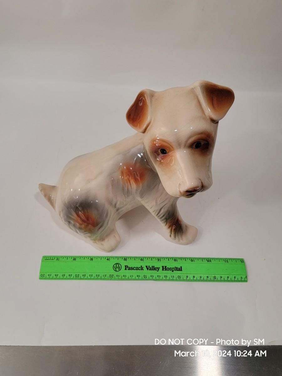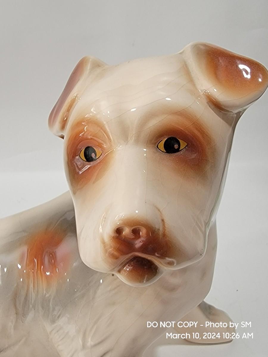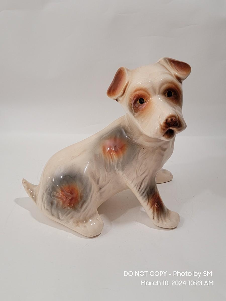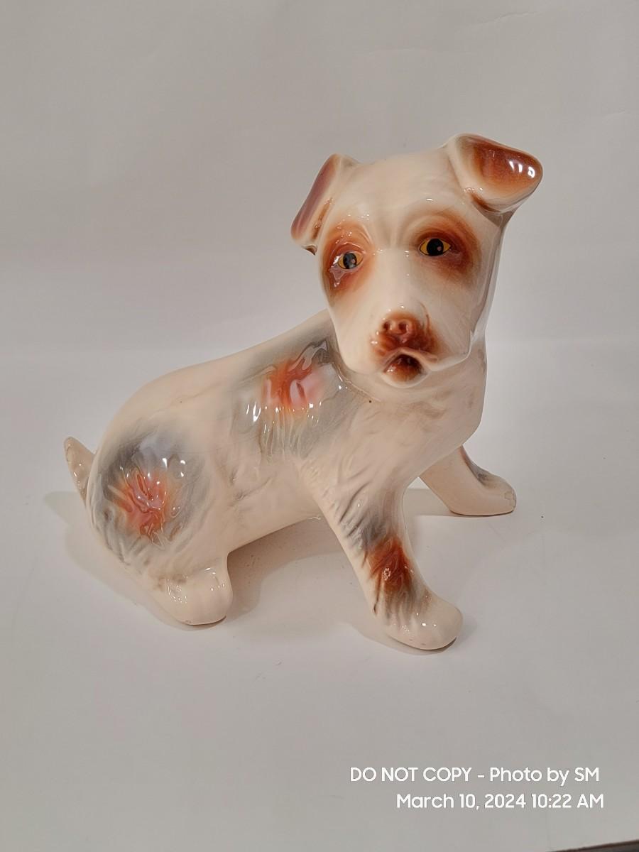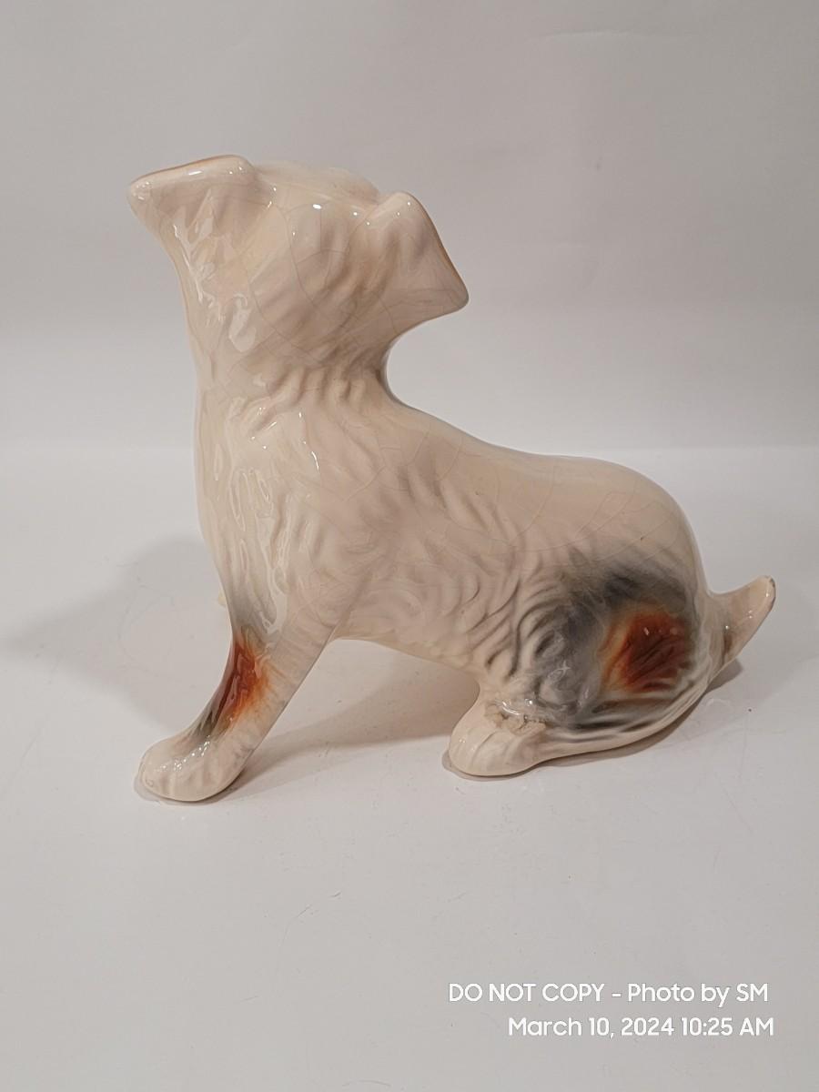 Porcelain or Chalkware, painted / glazed dog from Brazil