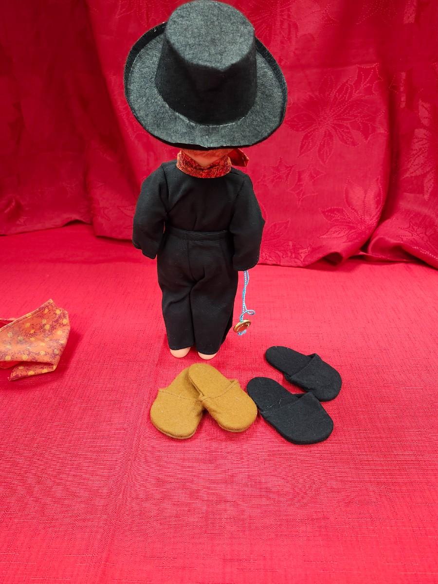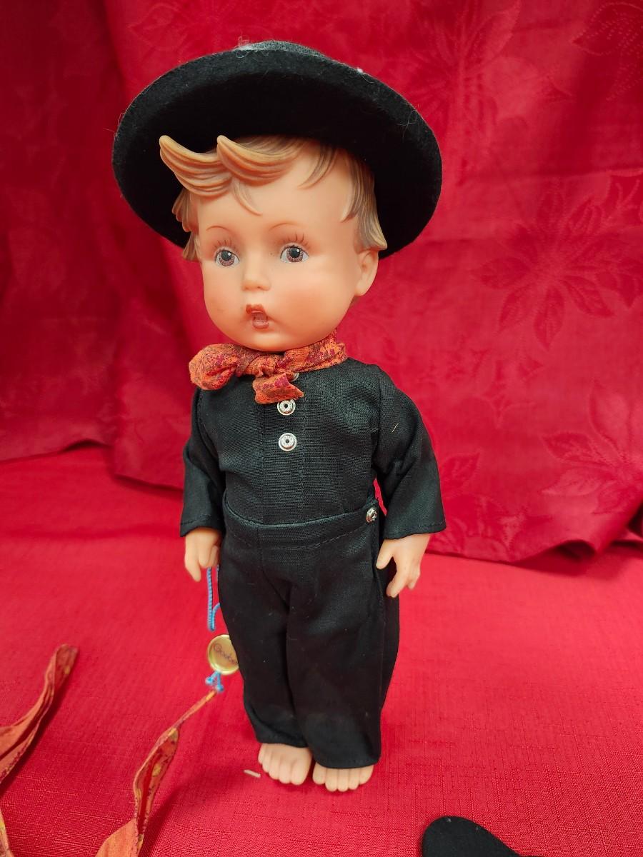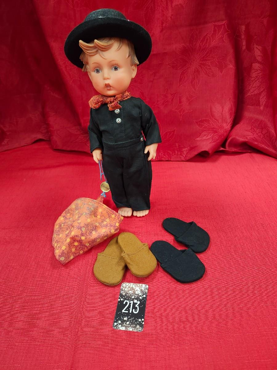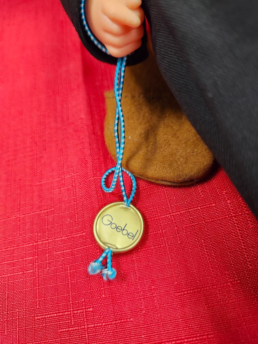 Vintage, with extra shoes and a bandanna. Gold tag "aus dem haus" Goebel.