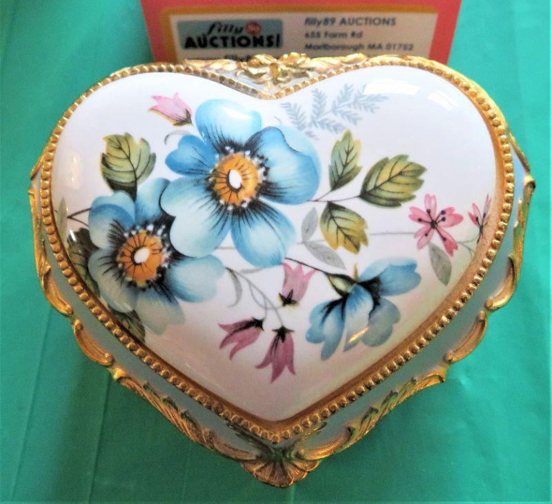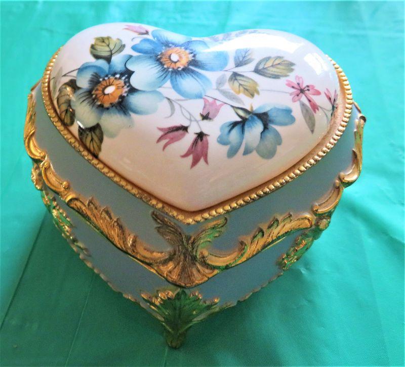 Porcelain Heart Music Box Blue Floral Gold Styled by MELE Co. JAPAN