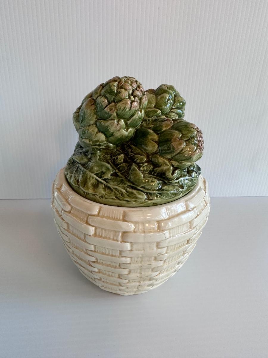 Porcelain Intrada Artichoke Lidded Jar, made in Italy.