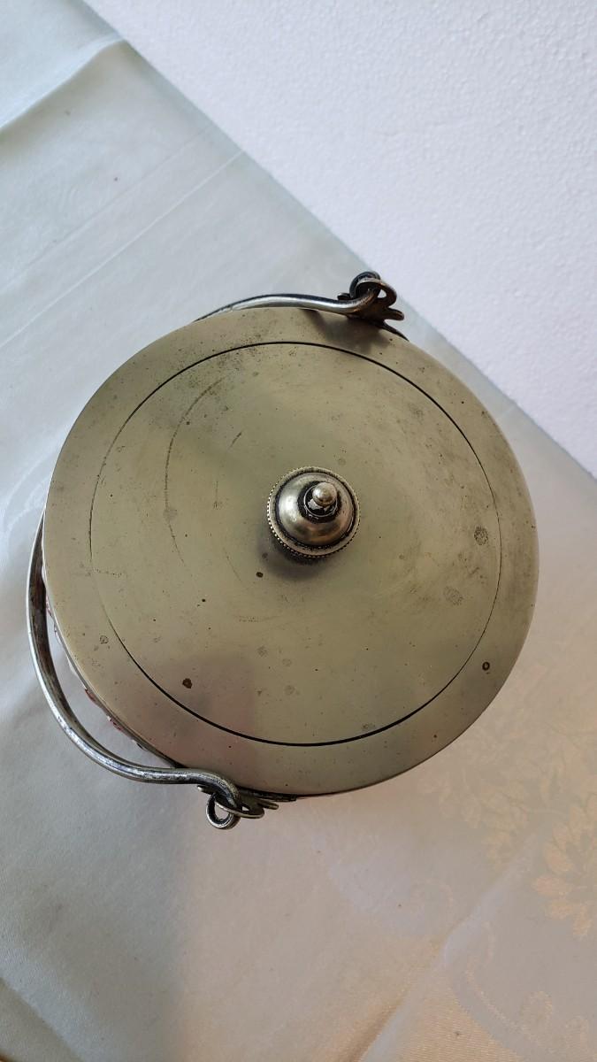 Porcelain jar with silver plate with lid