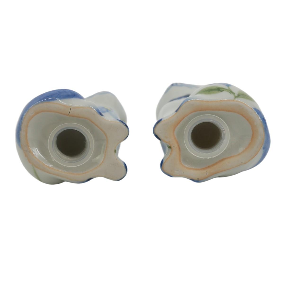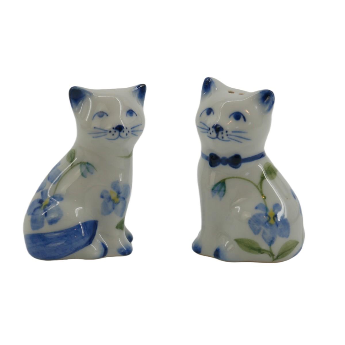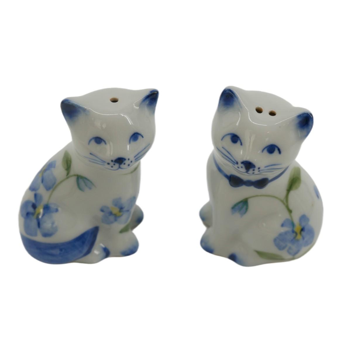 Two blue and white painted porcelain kitty cat salt and pepper shakers. Each measures 1.75" x 1.5" x 2.5", total weight is 2.4 oz. No issues found.