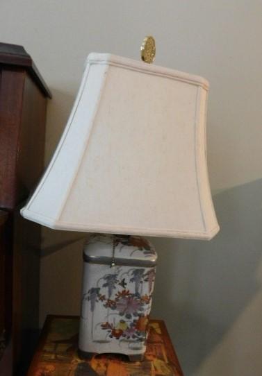 Porcelain Lamp with Painted Asian Theme on Post shade will need to be replaced