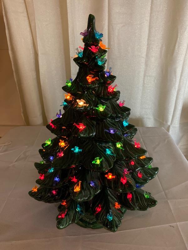 Lot #55 22" Porcelain Lighted Christmas Tree with Birds