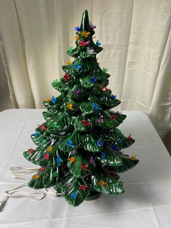 Lot #55  22" Porcelain Lighted Christmas Tree with Birds